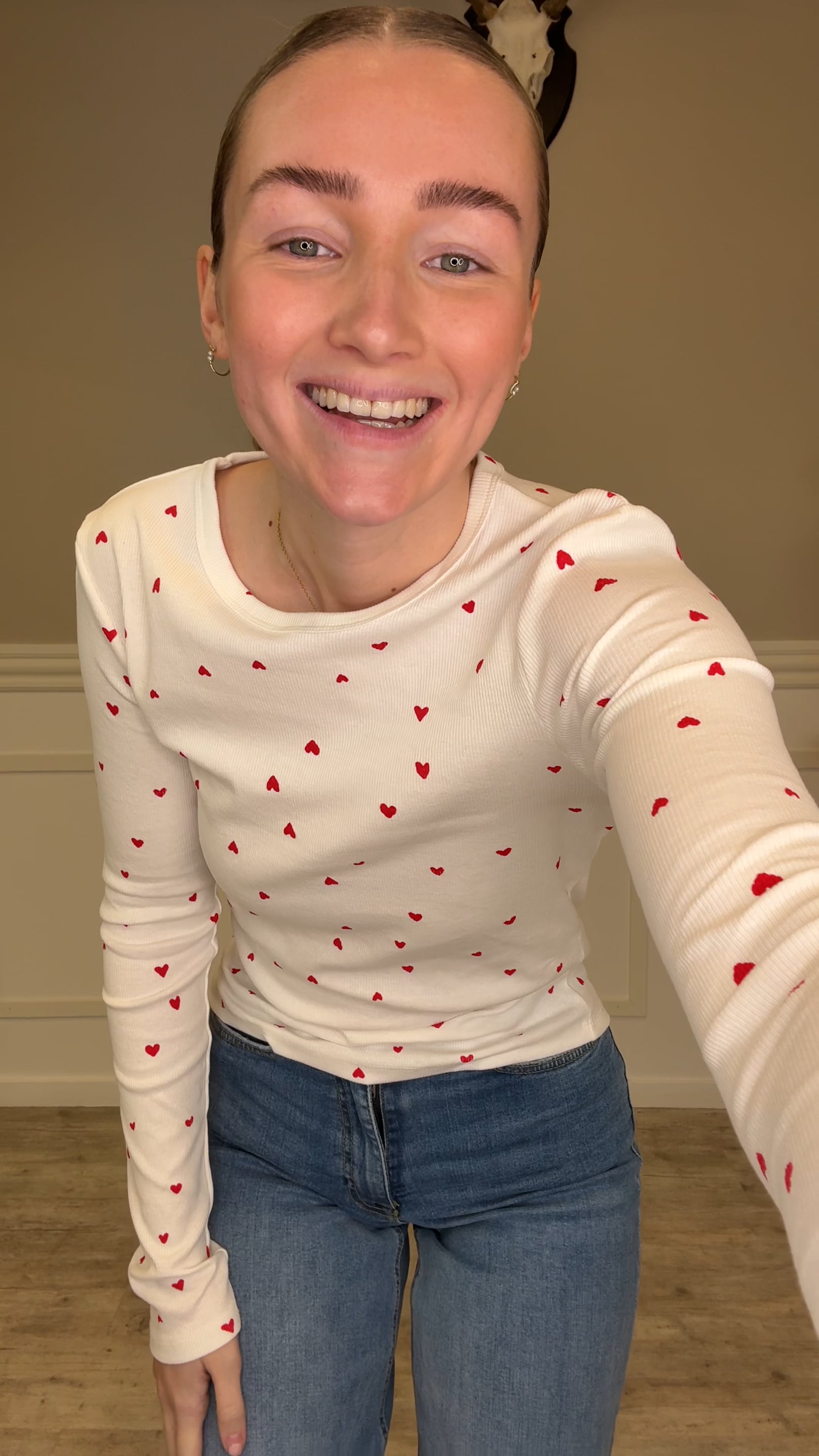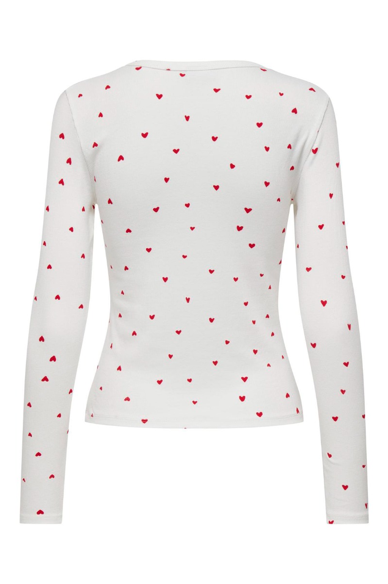JDY - Bluse - Sofia L/S Print Top - Cloud Dancer/Red