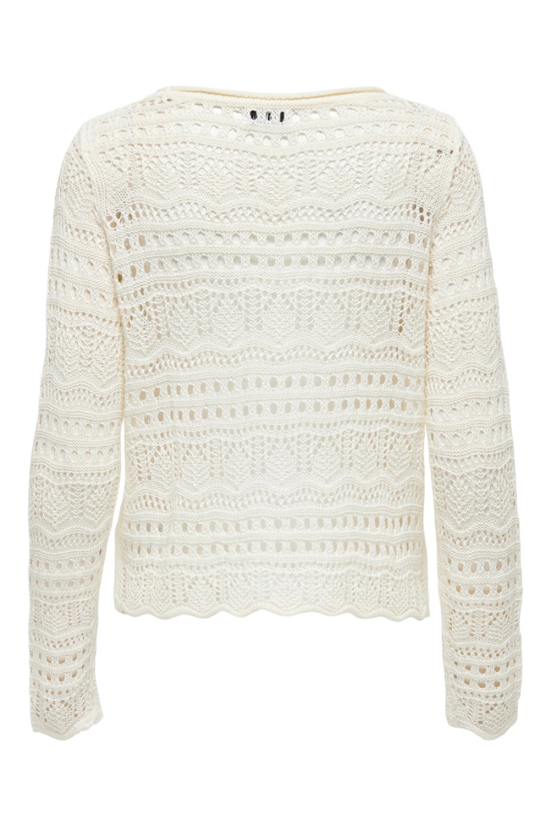 Den fineste bluse fra JDY er kommet til denne sæson. Denne er hvid og passer til alt. Den der i en lækker strik kvalitet og derfor er den også gennemsigtig hvor vi vil anbefale at bruge en top under. Den er med lange ærmer der afsluttes med en lille bølgekant.
