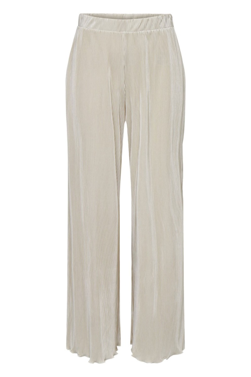 Skønneste plisseret bukser fra JDY i en flot lys nuance med matchende skjorte. Bukserne falder flot og krøller ikke - MEGA SKØNT! De er højtaljet med elastik i livet og har et lige snit. Style det som sæt både til afslapning og fest alt efter dit skovalg.