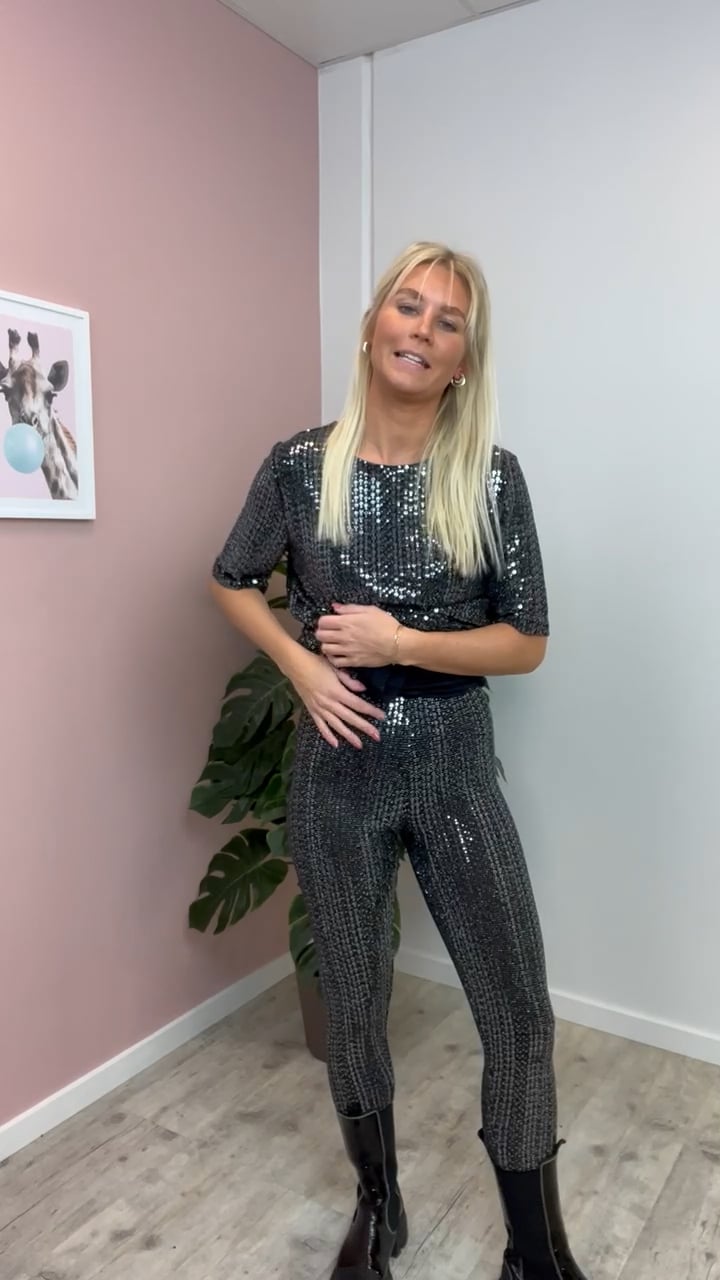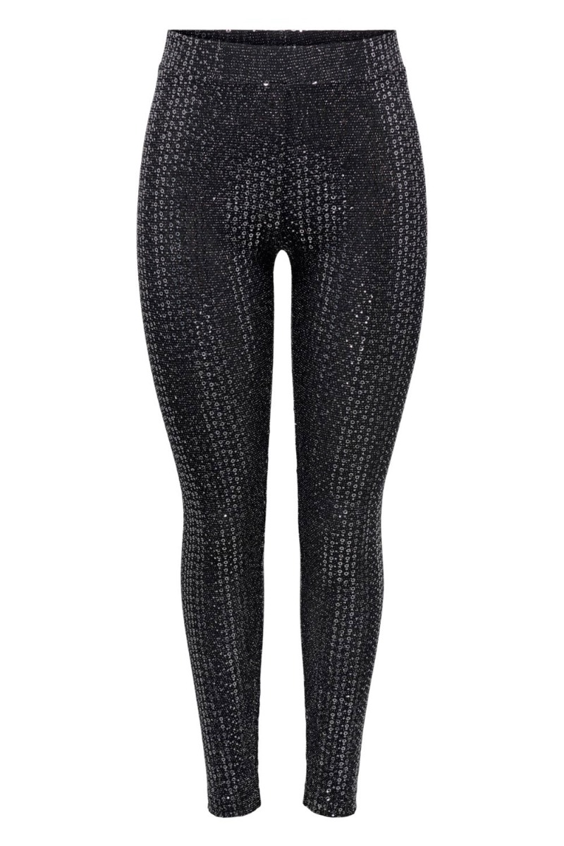 Disse paillet leggings oser af PARTY med den matchende kjole fra JDY. De er tætsiddende i et stretchy materiale med elastik i livet. Bundfarven er sort med sølv pailletter overalt. Brug det som sæt eller under en skjorte og blazer.