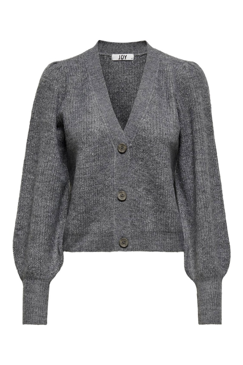 JDY - Cardigan - JDY Drea L/S Short Cardigan - Dark Grey Melange