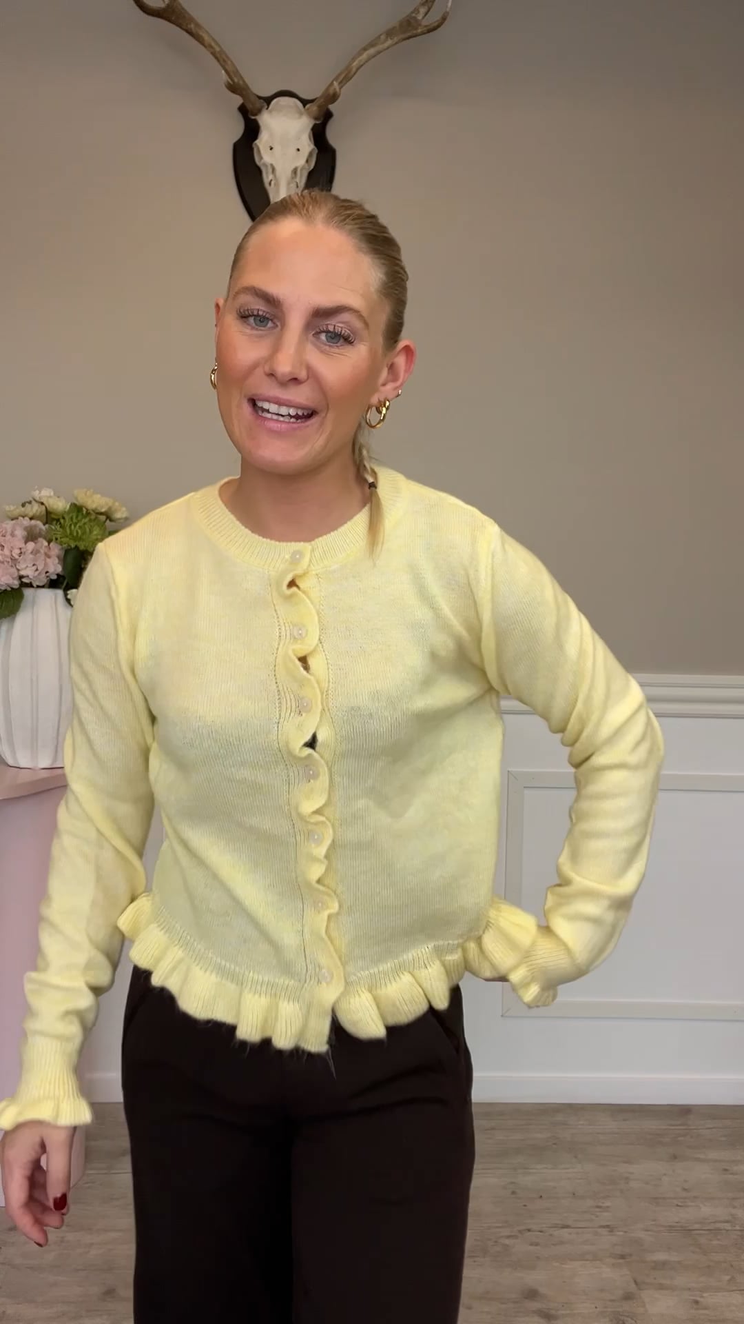 En super sød cardigan fra JDY med den fineste lille bølgekant. En smuk lysegul farve er perfekt til at lysne dit outfit op. Denne cardigan er en rigtig klassisker, som kan burges til det meste og er super behagelig at have på!