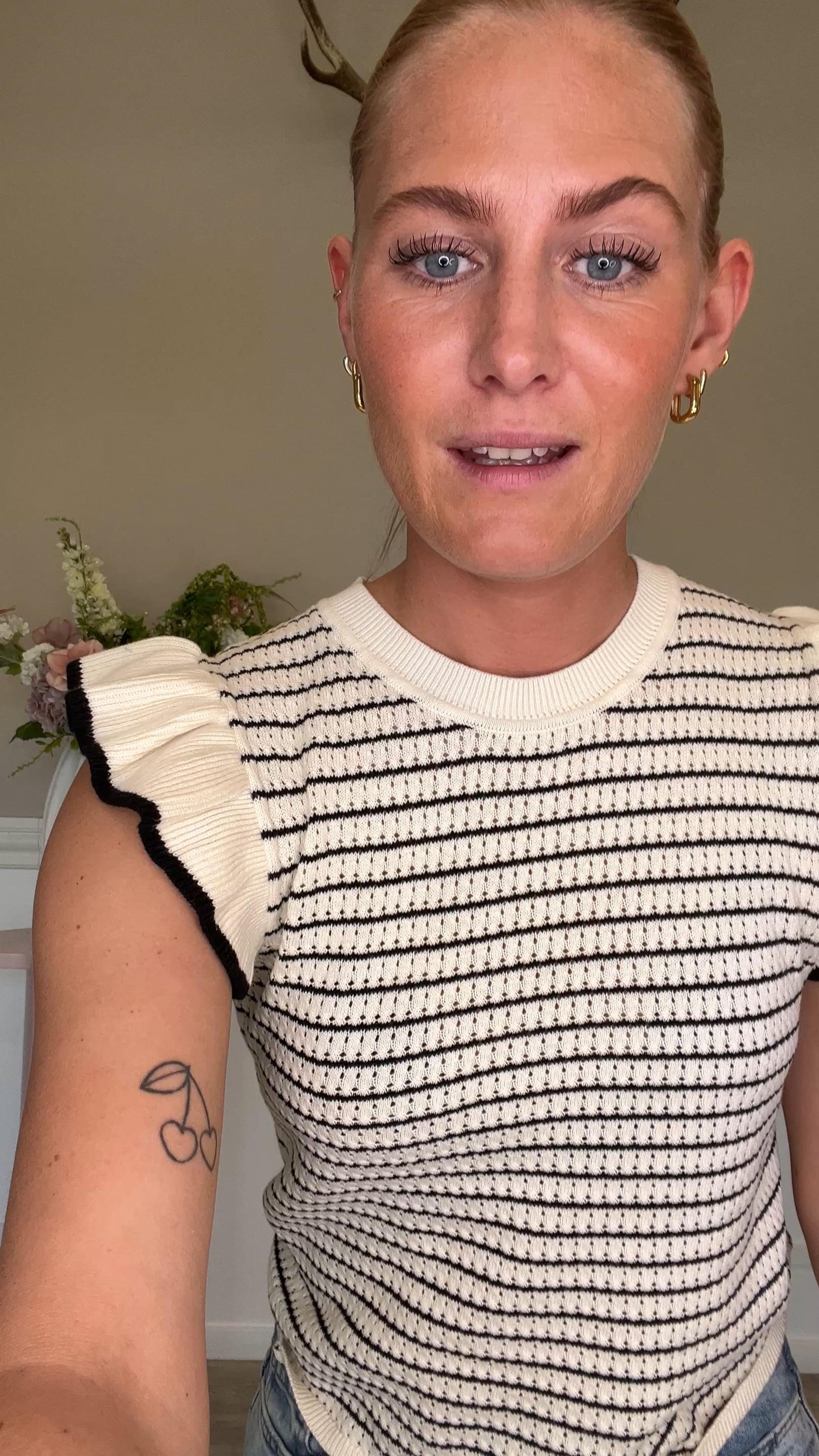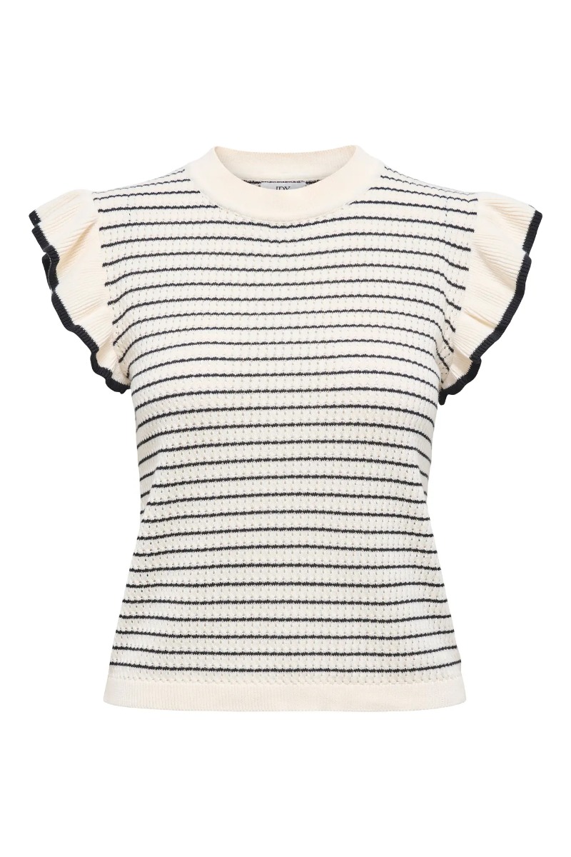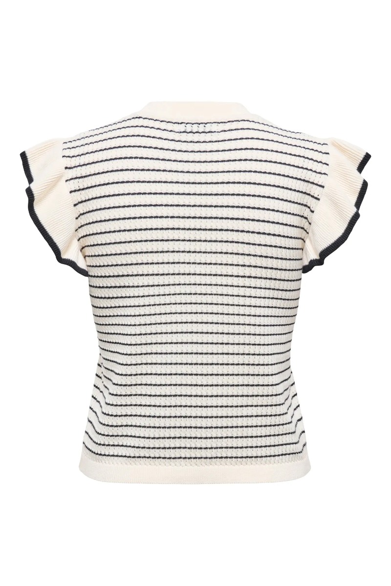JDY - Top - Carice S/L Frill Pullover - Cloud Dancer W. Black Structure