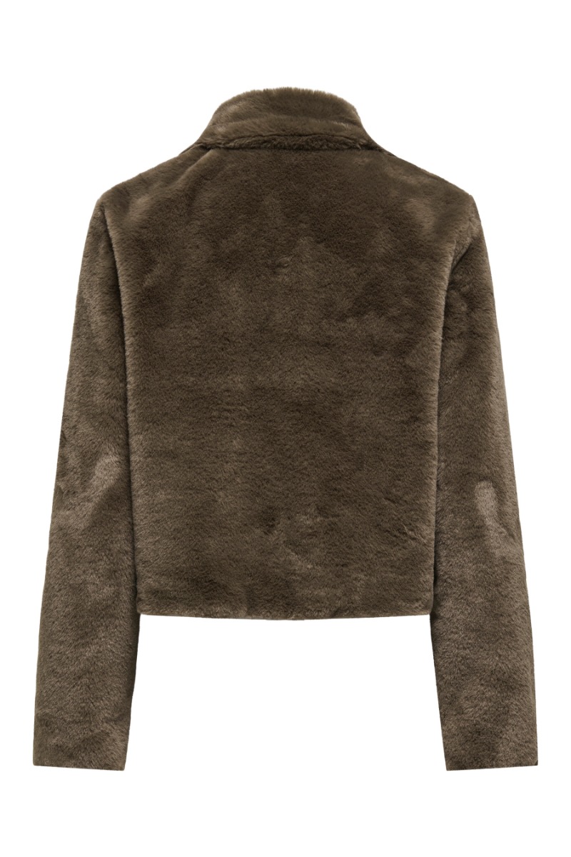 JDY - Jakke - Macy Life Faux Fur Jakke - Teak