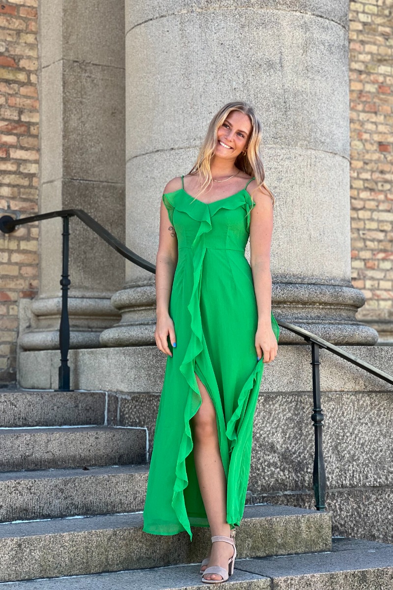 JDY - Kjole - Belle S/L Frill Maxi Dress - Medium Green