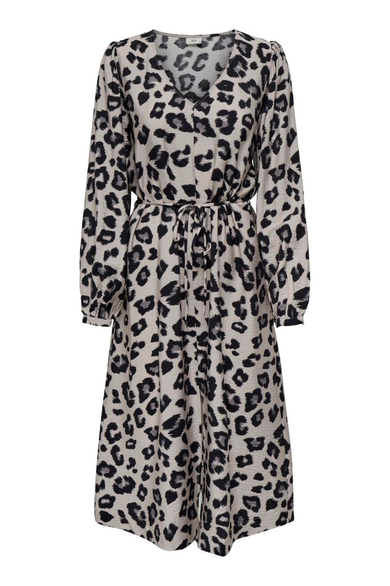 En virkelig skøn kjole fra JDY er landet i et flot leoprint! Denne kjole er i et A-snit, med bindebåd i taljen og V-udskæring. Den er super fin til hverdag til et par sneakers, men kan også sagtens styles op til fest!