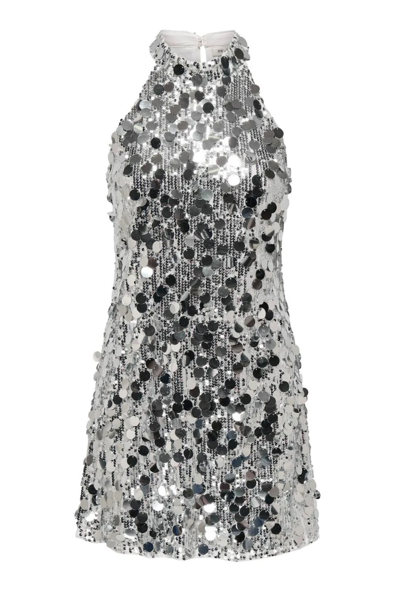 JDY - Kjole - JDY Claire S/L Sequins Halter Dress - Silver