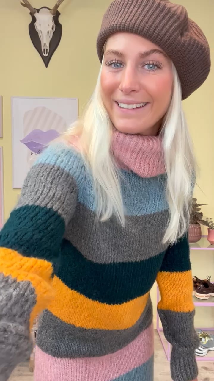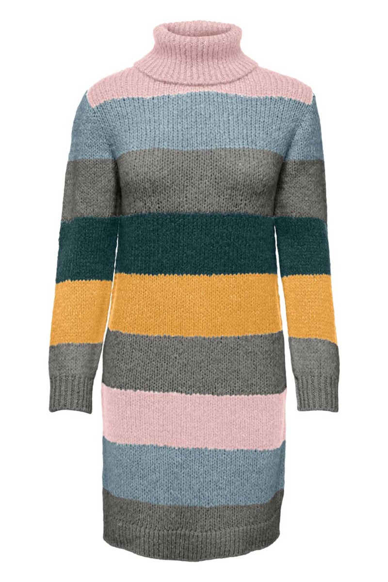 Den dejligste kjole fra JDY i et blødt materiale der holder dig varm til efteråret. Kjolen er løs med rullekrave og lange ærmer. Den er designet med de flotteste striber i forskellige farver der skaber en rigtig efterårsstemning. Style med strømpebukser og en rå støvle.