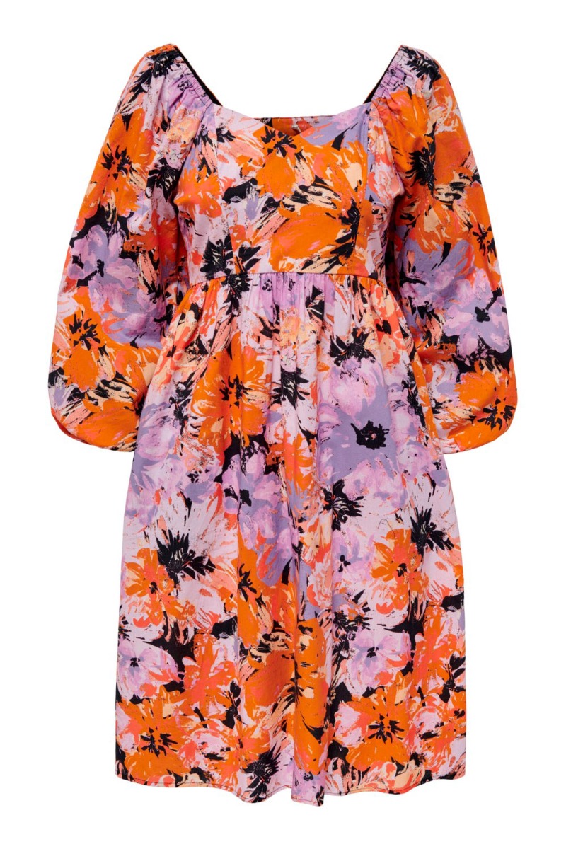 JDY - Kjole - JDY Isabella 3/4 Dress - Chalk Violet/Big Orange Ochre Flower