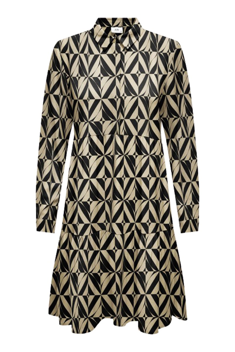 JDY - Kjole - JDY Piper L/S Aop Shirt Dress - Black/humus