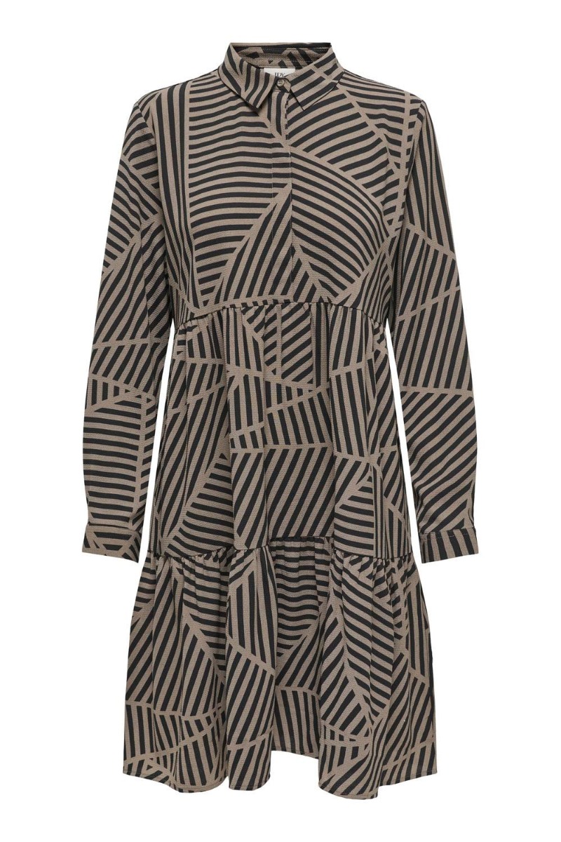 JDY - Kjole - JDY Piper LS AOP Shirt Dress - Walnut