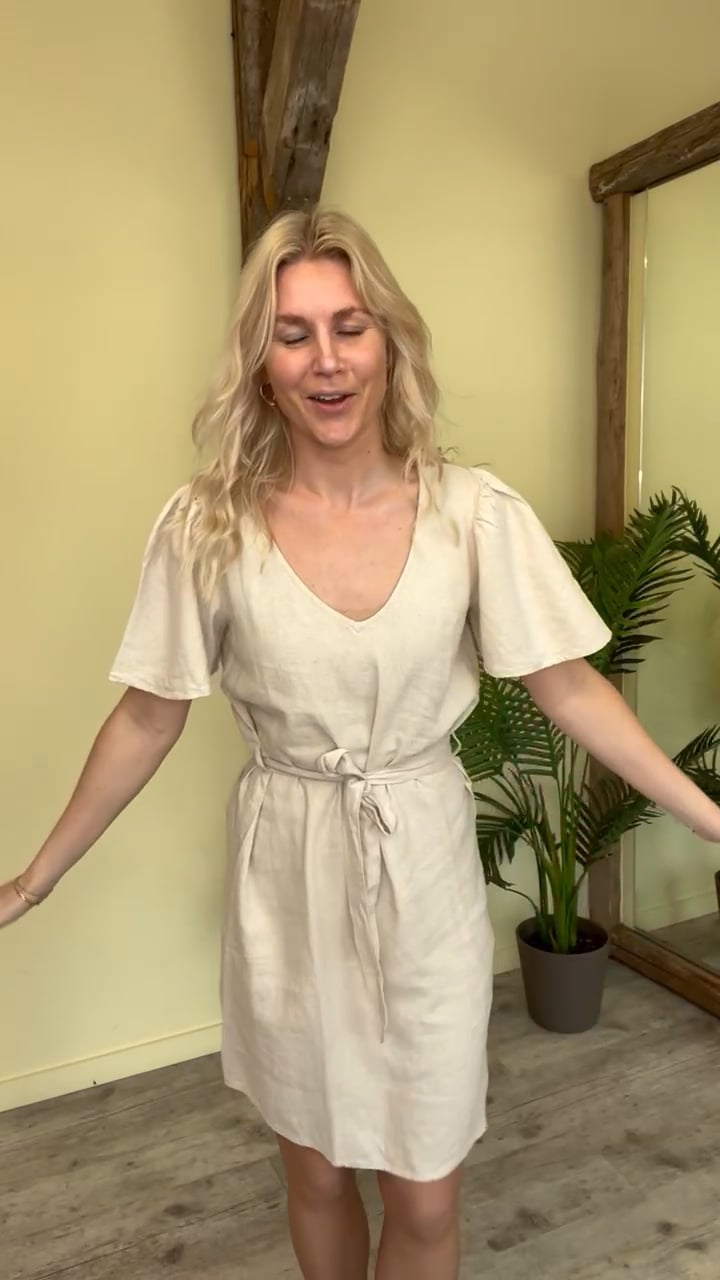 En sød kjole fra JDY i en lækker hør kvalitet er kommet til denne sommer. Den er kort og har bindebånd i taljen. Dog kan bindebåndet tages af og den kan nemt bruges uden. Kjole findes også i army og kvaliteten findes i flere forskellige styles.