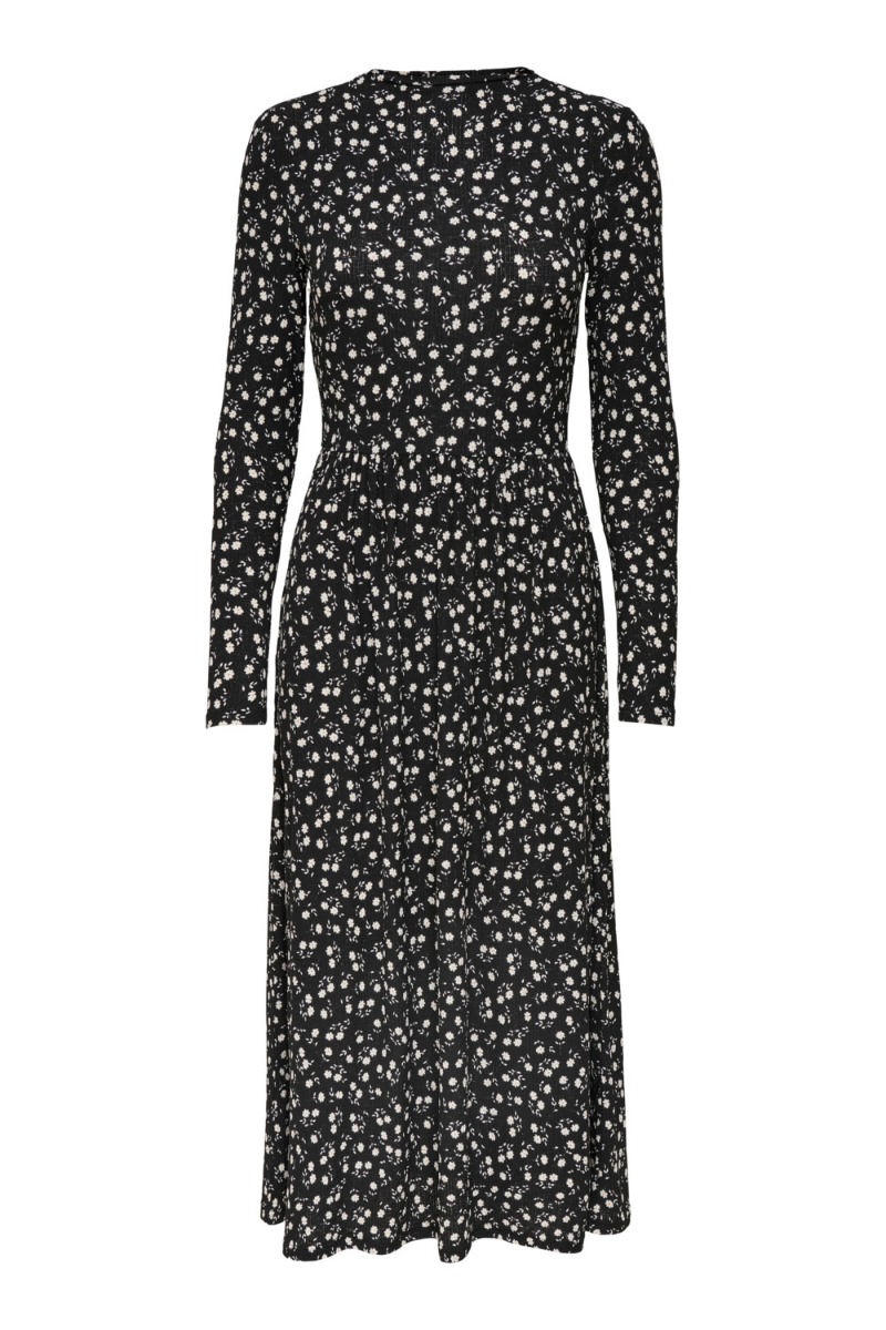 JDY - Kjole - Svan L/S Shin Length Dress - Black/White Mini Flower