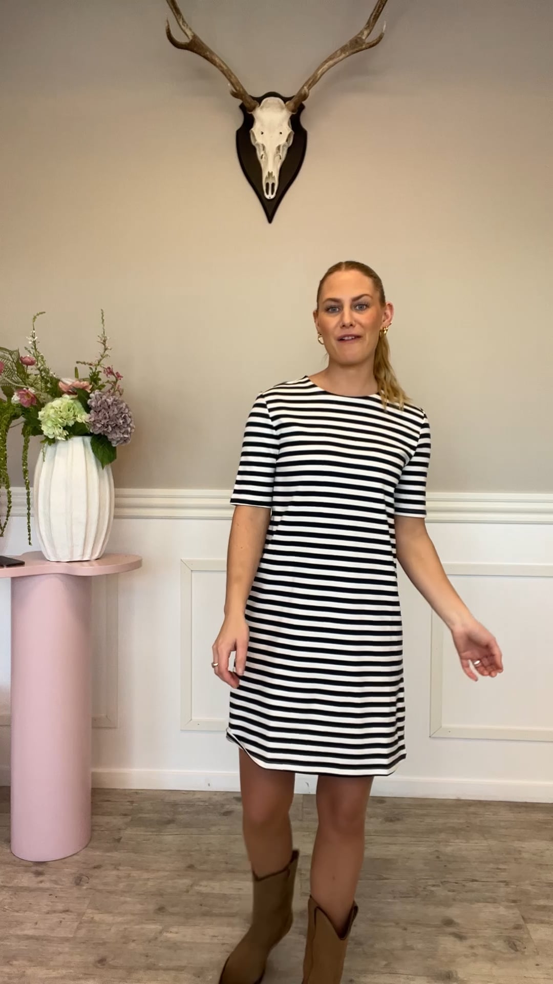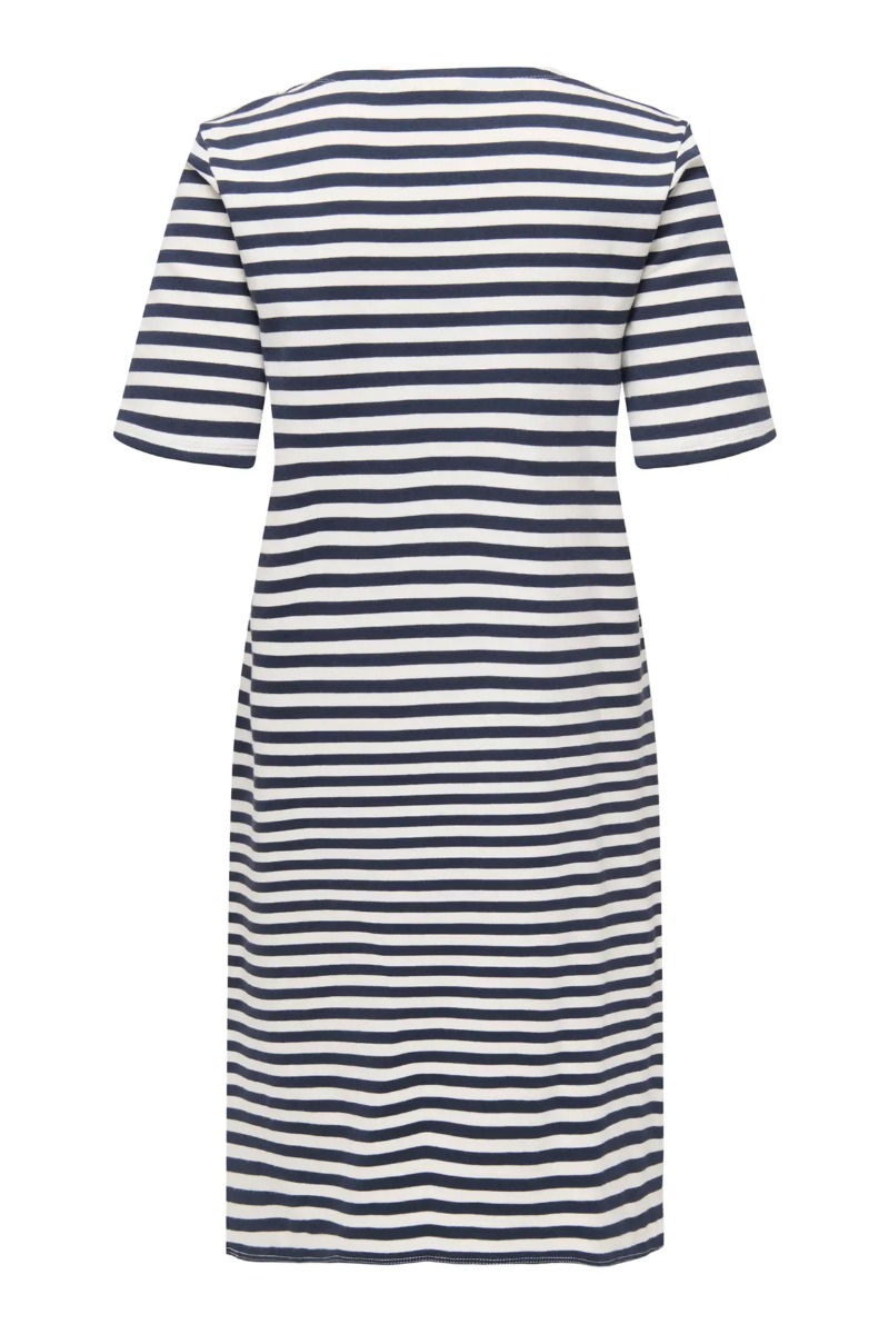 Behaglig kjole fra JDY! Kjolen er i et lækkert og strækbart materiale, den er med et stribet mønster og har korte ærmer. Den kan både bruges som en afslappende søndagskjole på sofaen, men kan også sagtens styles op med et par fine sko og en flot jakke eller cardigan.