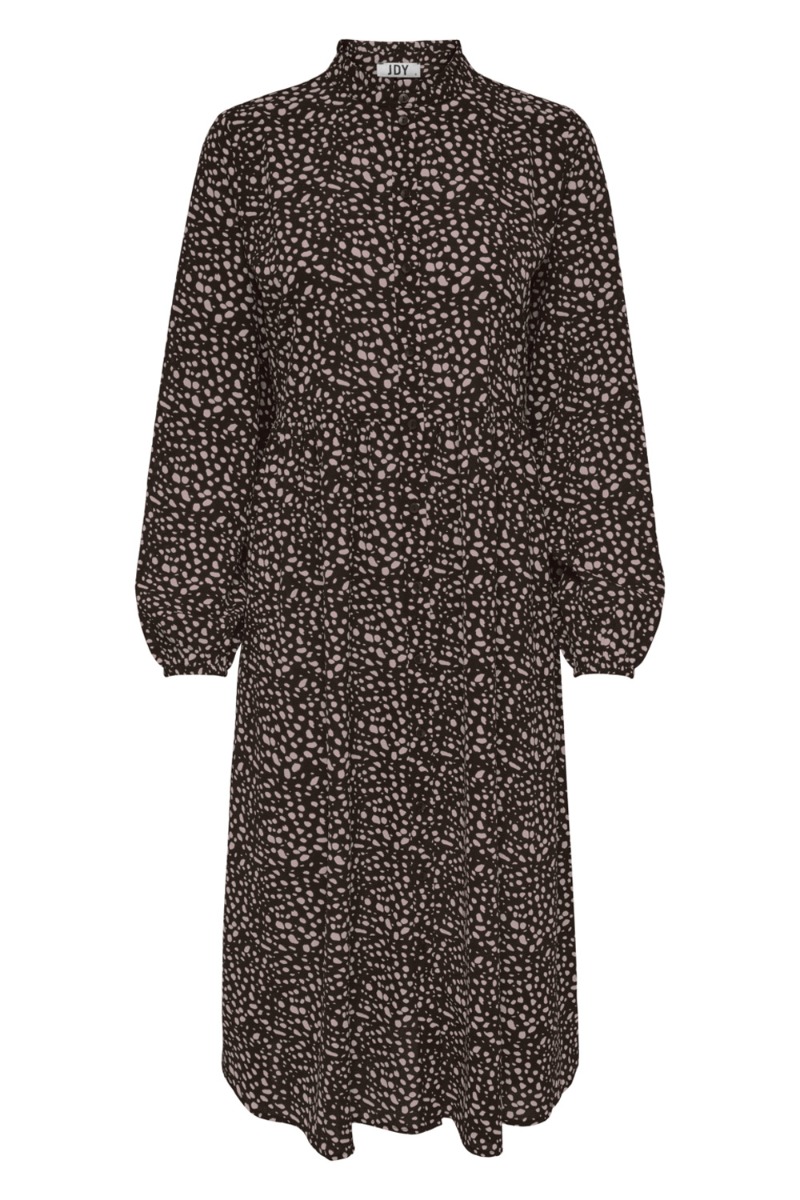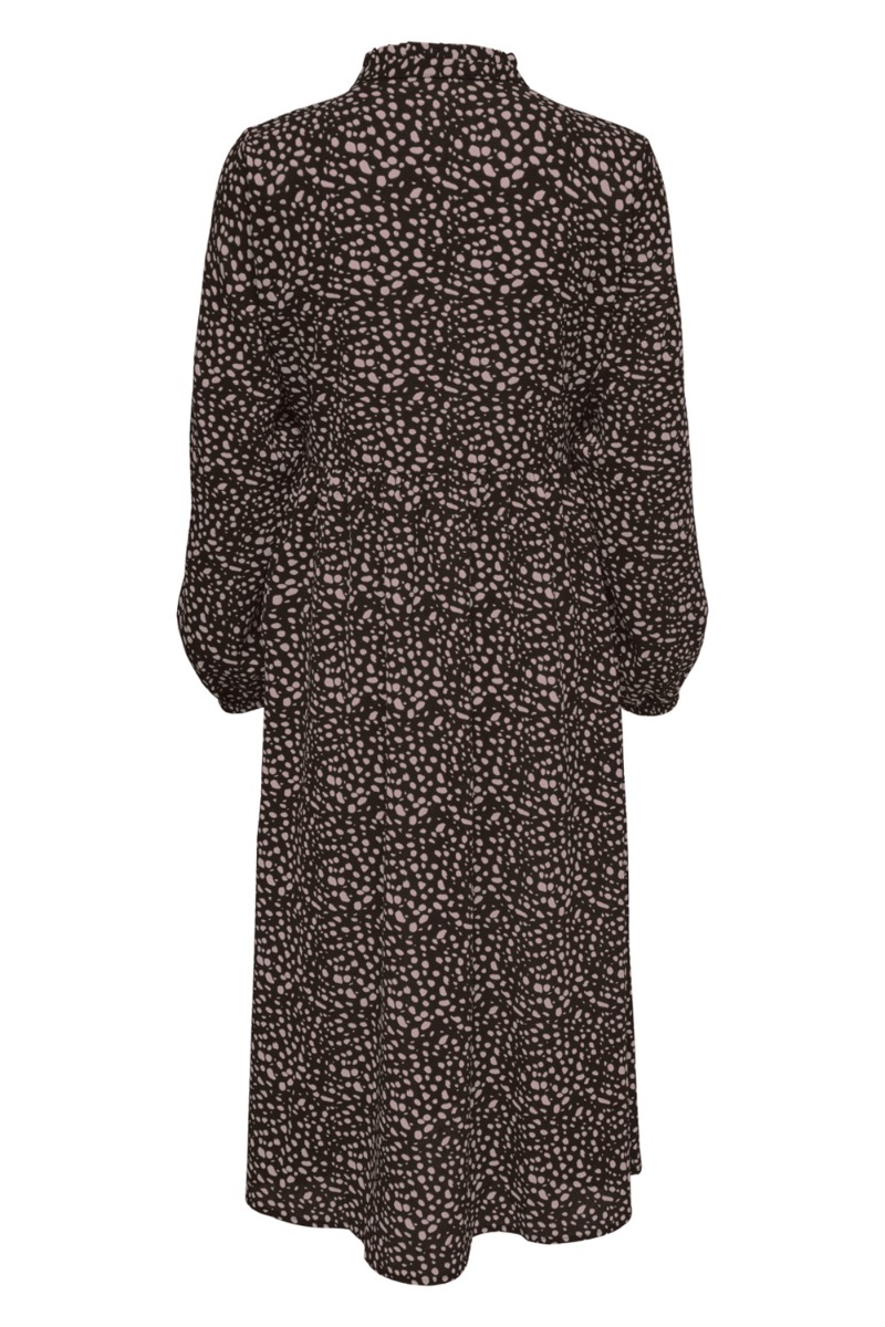 Den velkendte piper kjole er tilbage i et smukt grafisk mønster i rosa nuancer med en brun baggrund. Kjolen har et taknemmeligt snit med en tydelig syning ved taljen der giver en to-delt-effekt. Foran lukkes kjolen med knapper hele vejen ned og har lange ærmer der afsluttes med elastik i enden. Denne kjole kan både bruges til sommeren med en sandal og nemt styles op til efteråret med en støvle.