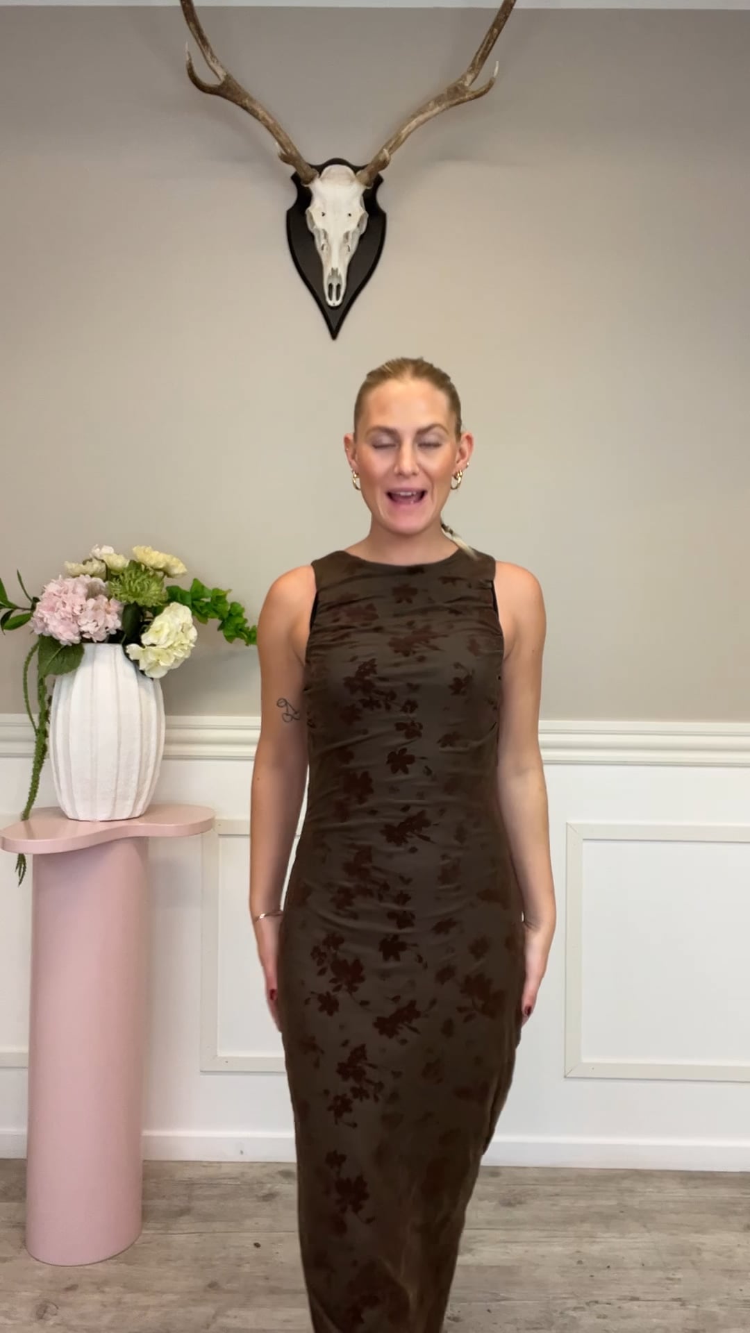 JDY - Kjole - Ruby S/L Rouching Flock Dress - Chocolate Brown/Big Flower