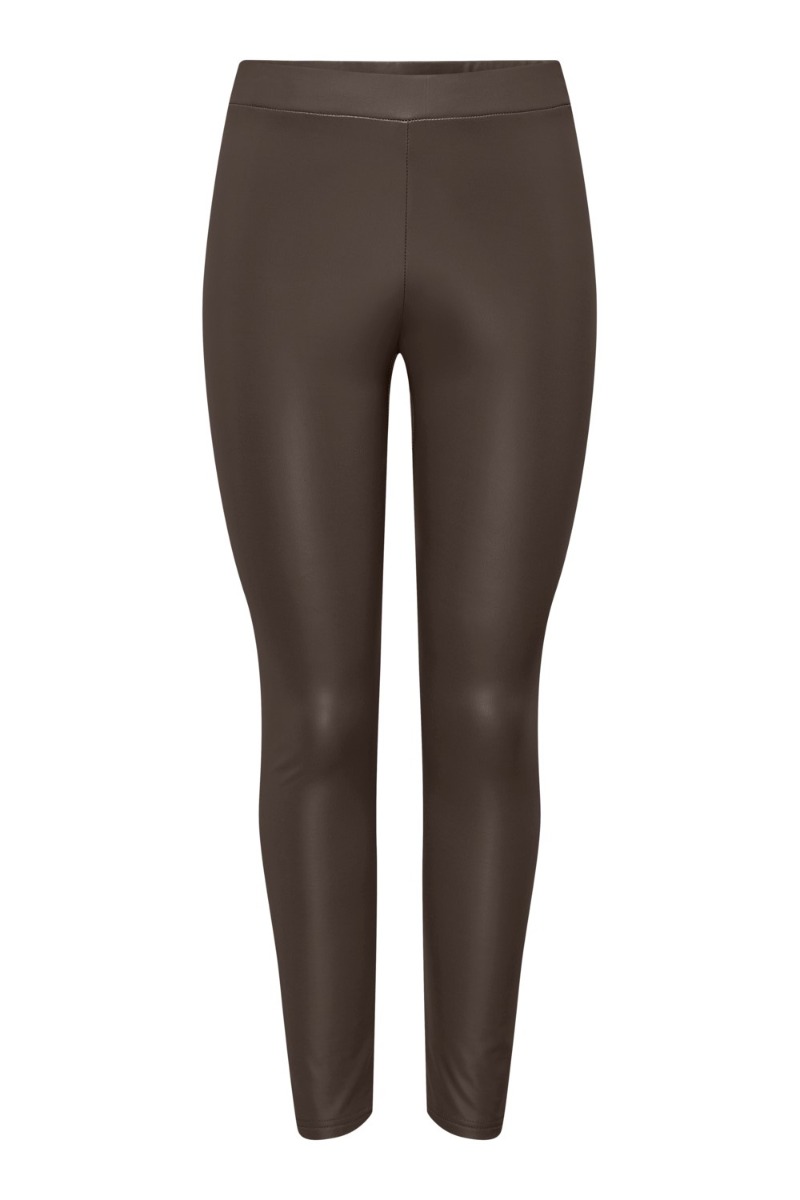 Cool PU leggings fra JDY i en smuk chokolade brun farve med en smule shine. Disse leggings er tætsiddende med stretch og elastik i taljen. De er utrolig behagelige at have på og egner sig både til hverdag med en oversize strik og festerne med en fin top til.