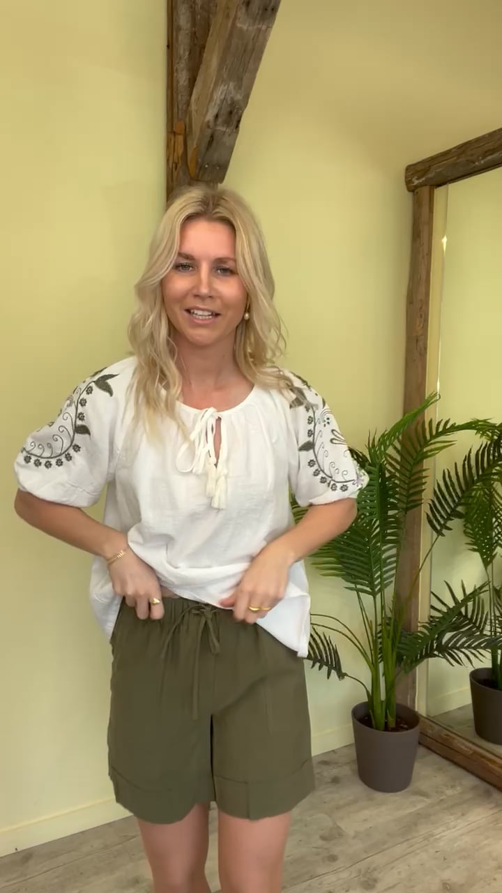 Et par skønne shorts fra JDY i en flot armygrøn farve. Den er med elastik i taljen og markeres med en lille sløjfedetalje foran. Derudover er der foldeeffekt i bunden og lommer i begge sider. Nem til en lille sommertop eller en skjorte.
