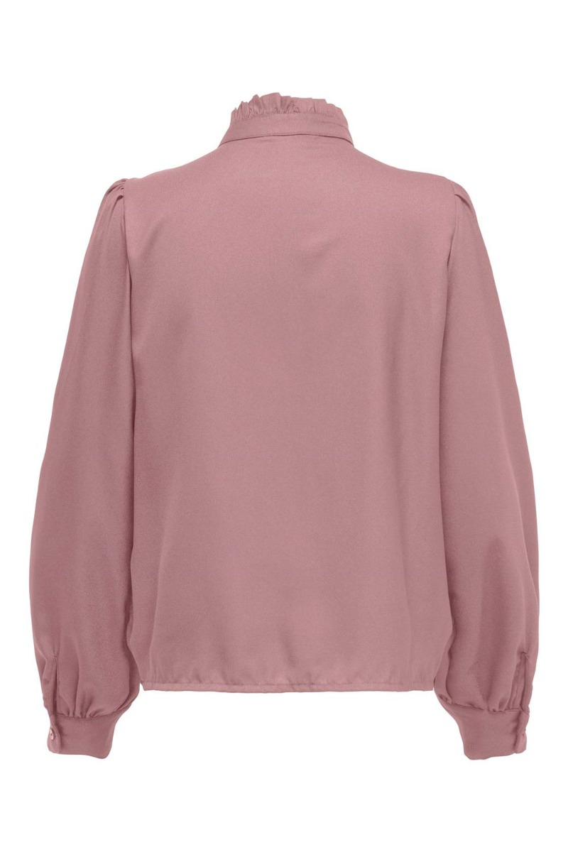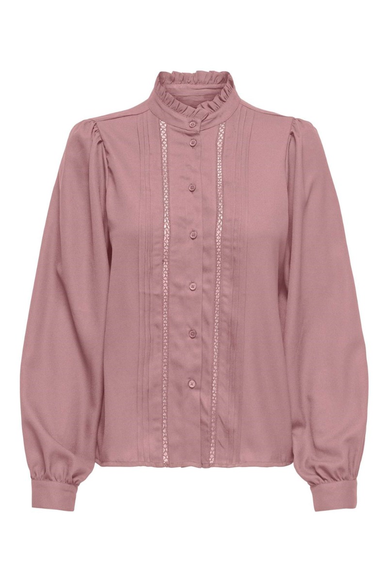 En perfekt skjorte til et par par jeans eller en nederdel fra JDY. Skjorten er med fine blondedetaljer og har flæsedetaljer ved halsen. Den lukkes foran med synlige knapper og starter med kinakrave ved halsen. Den sarte og støvet rosa farve er perfekt til efteråret.