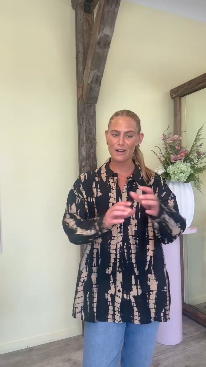 En super fin skjorte fra JDY. Den har knaplukning foran og krave. Skjorten har et flot mønster i sort og brun. Den er let og luftig i kvaliteten, og passer til det meste.