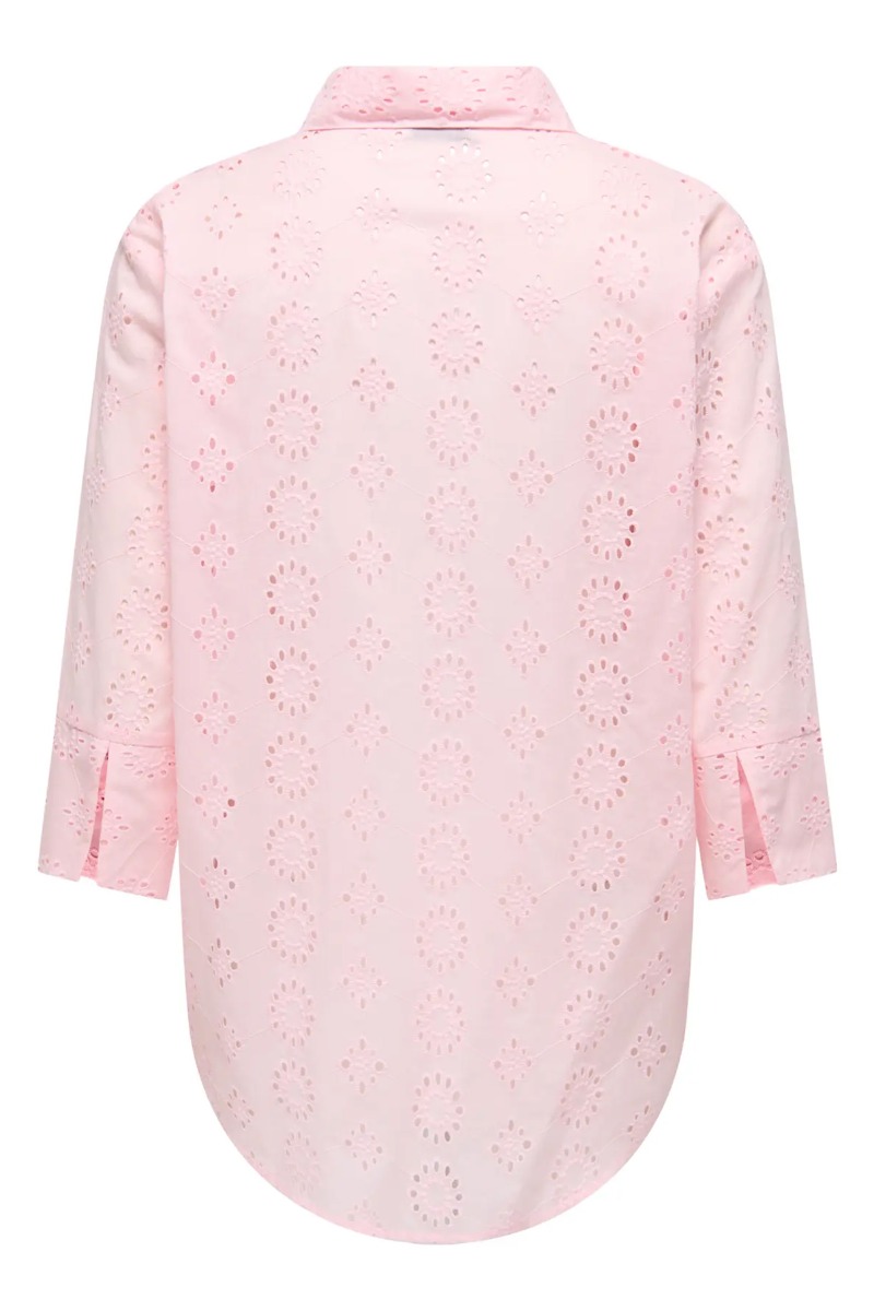 En smuk og feminin lyserød skjorte fra JDY er kommet i en grov blonde kvalitet. Den er løs i pasformen og en smule gennemsigtig som gør at vi anbefaler at du bruger en top under. Den har 3/4 lange ærmer og derfor også en fin sommertop.