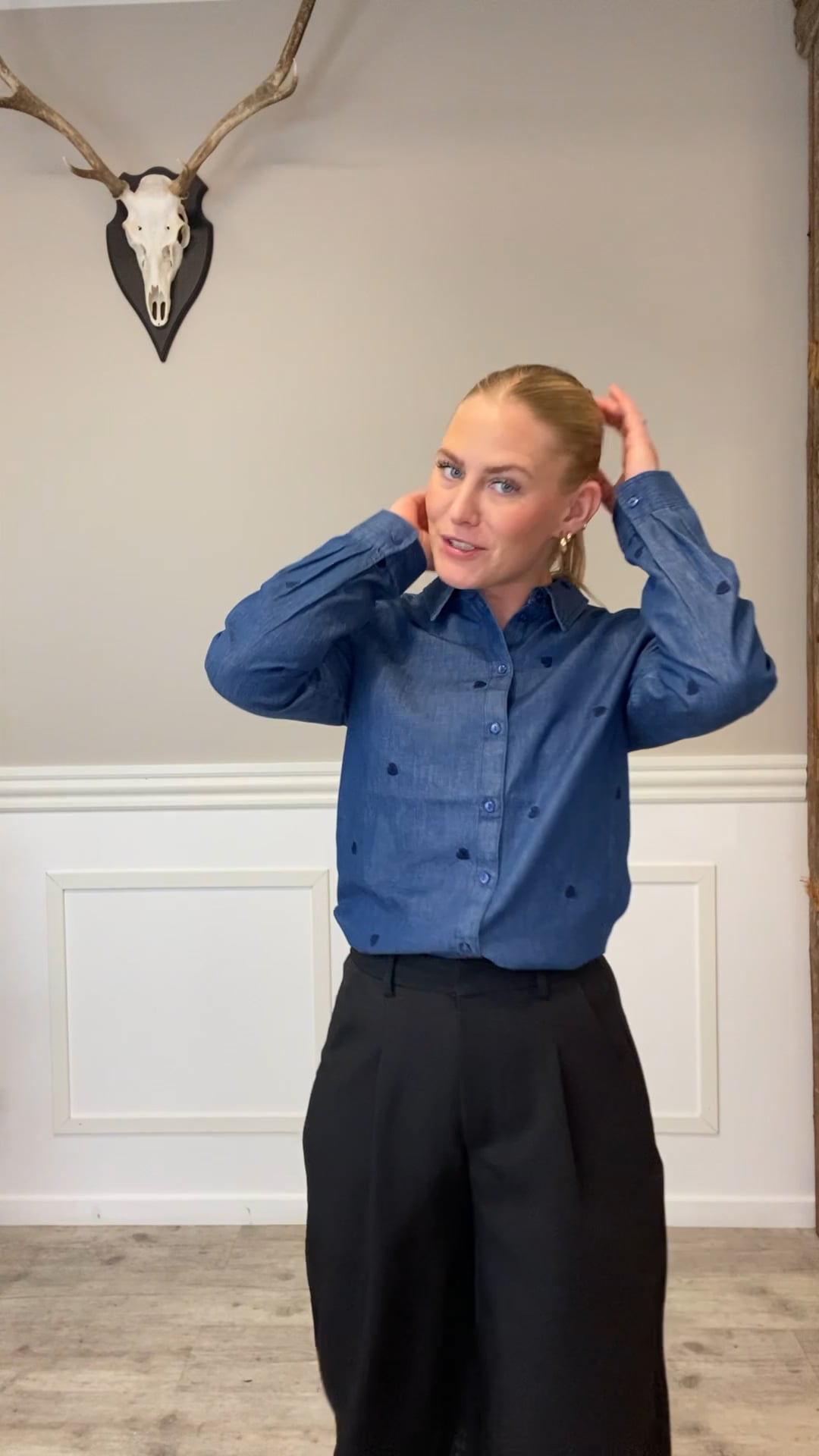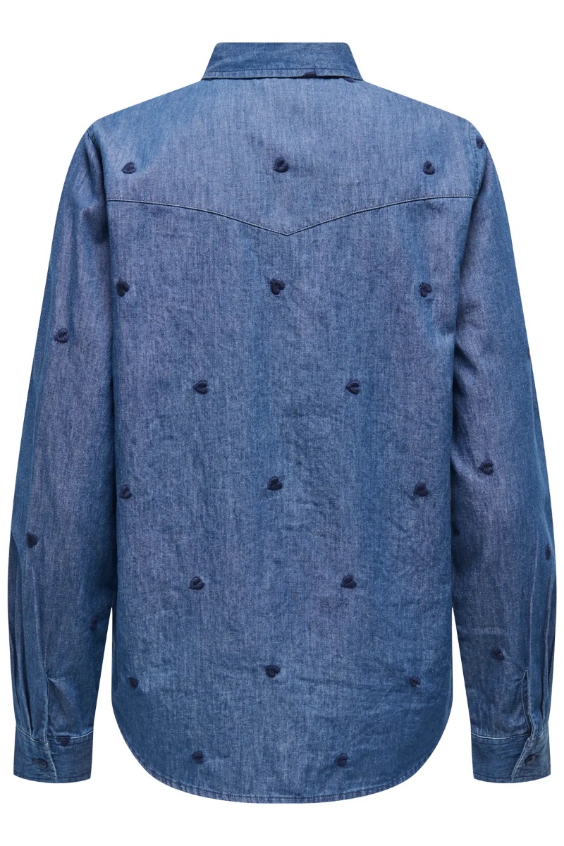 Skjorte fra JDY i blød denim med lange ærmer og fine, broderede hjerter. Den har et afslappet udtryk og er nem at style til både bukser og nederdele. Perfekt til et feminint og casual hverdagslook.
