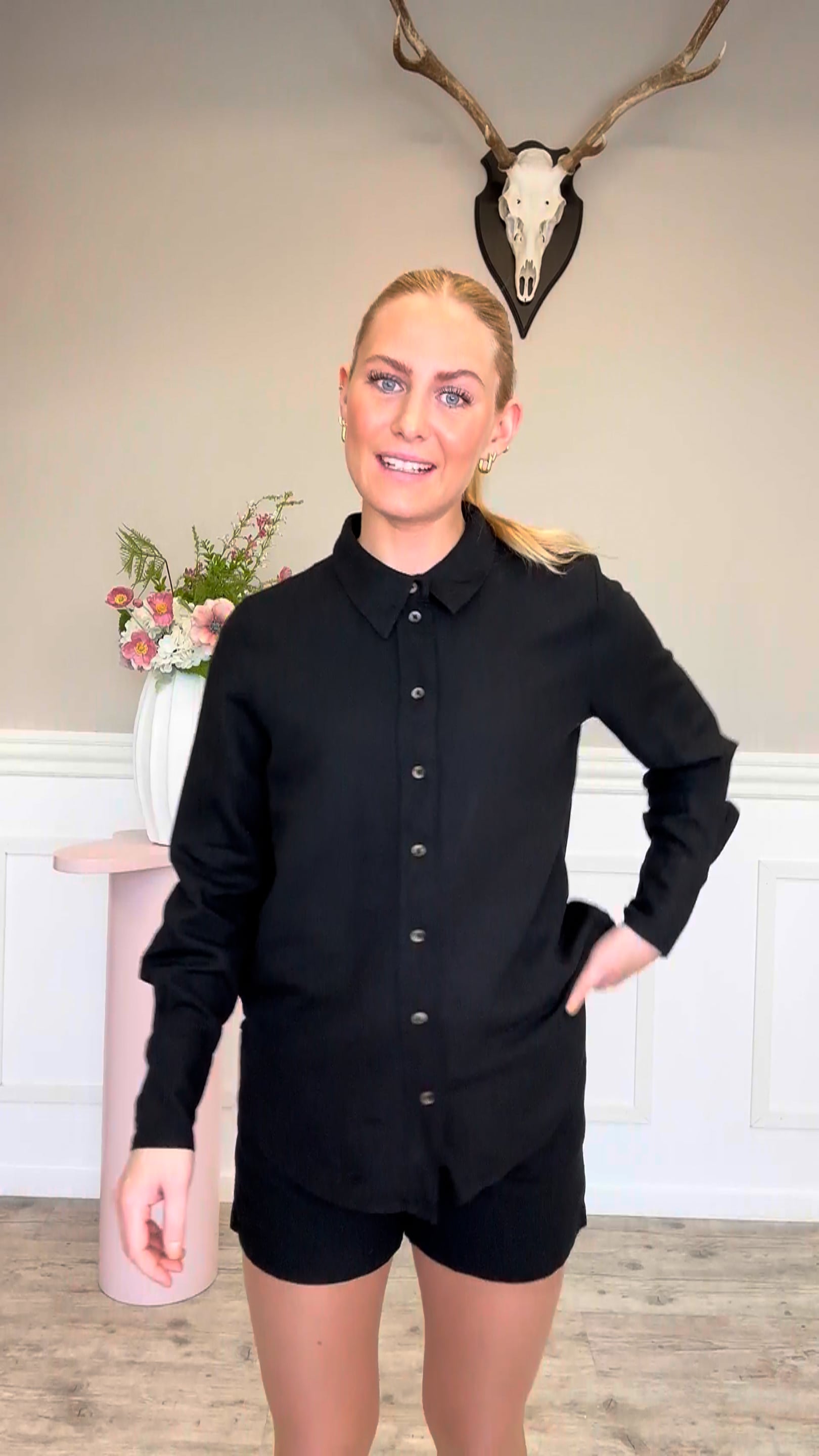En virkelig fin skjorte er landet fra JDY i en lækker hørblanding. Denne skjorte er både let og luftig at have på, så den er altså eprfekt her til forår og sommer. Style den til de matchende shorts eller en anden underdel!