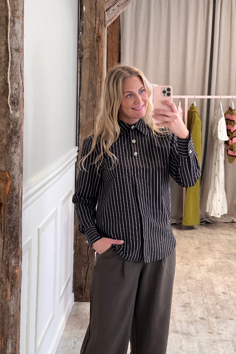 JDY - Soho L/S Striped Shirt - Chocolate Torte - Lilac Black