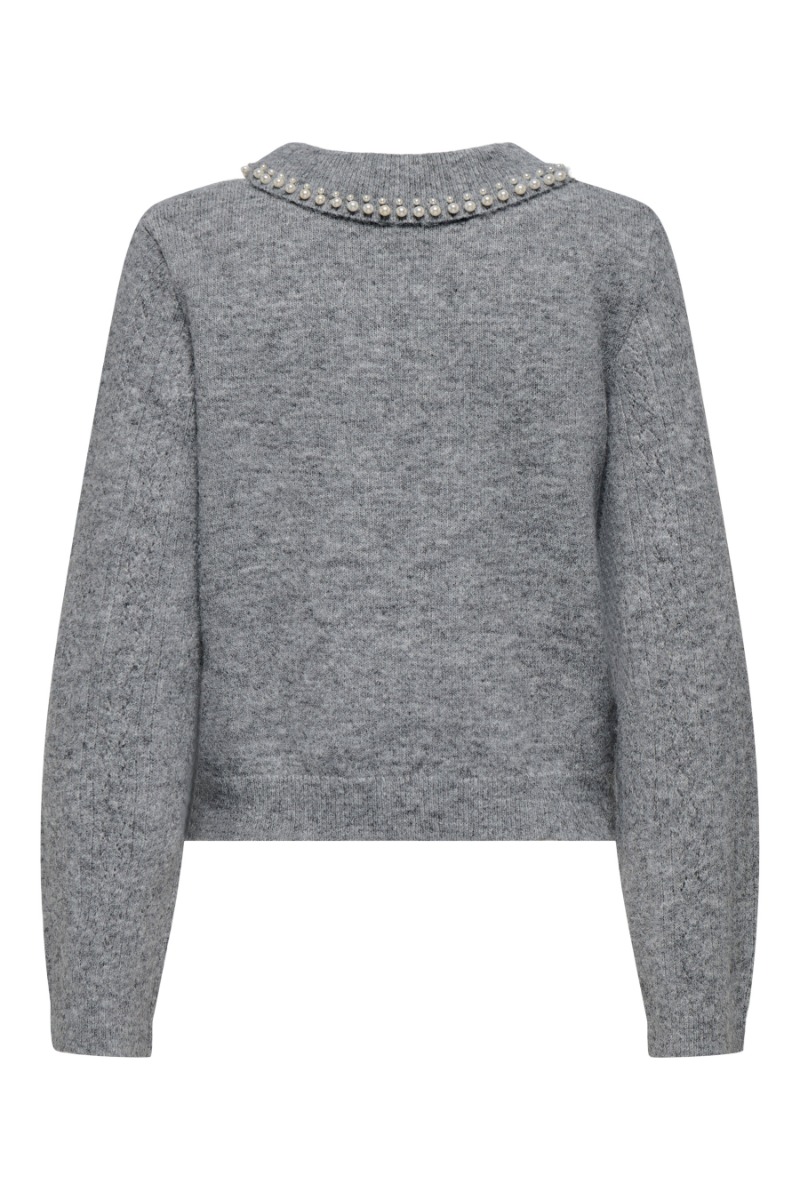 JDY - Strik - April Life L/S Pearl Collar - Medium Grey Melange