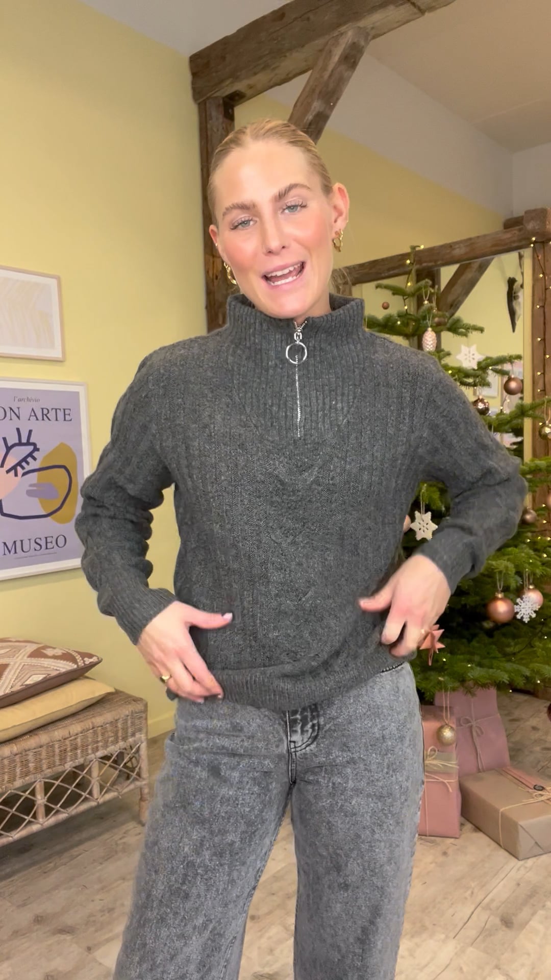 Den fineste strik fra JDY er kommet i en smuk mørkegrå farve. Derudover er den med højhals og lynlås i ved brystet også. Den er løs i pasformen og i tæt tynd strik så den ikke sidder for stramt. Derfor kan du sagtens have en top eller bluse på under.