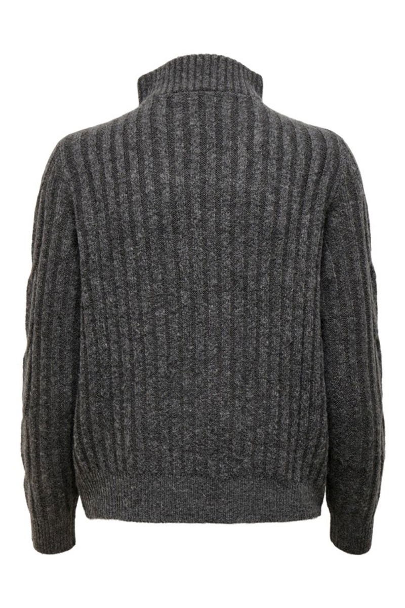 JDY - Strik - JDY Andrea L/S Zip Cable Pullover - Dark Grey Melange