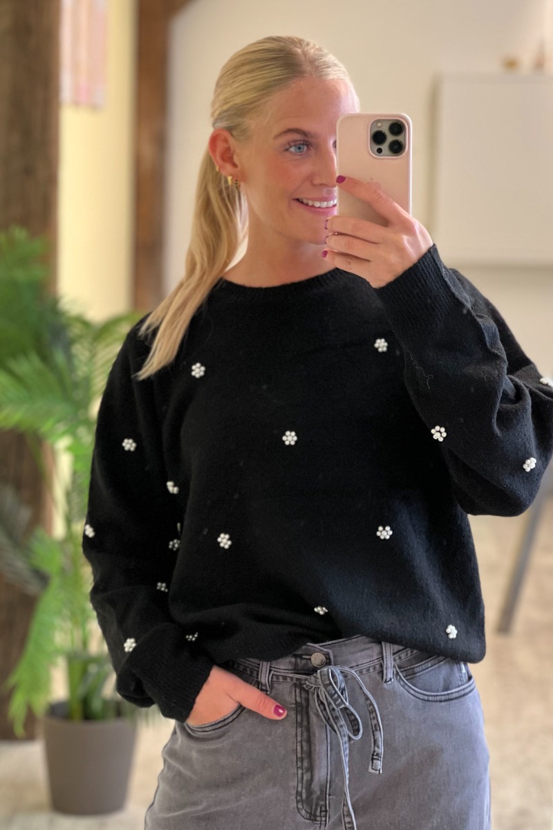 En fin strik fra JDY i en helt klassisk sort farve. Denne strik har fine perler på, som former små blomster - en super fin detalje! Strikken er helt nem at style, men giver samtidig lige lidt ekstra med de fine detaljer!