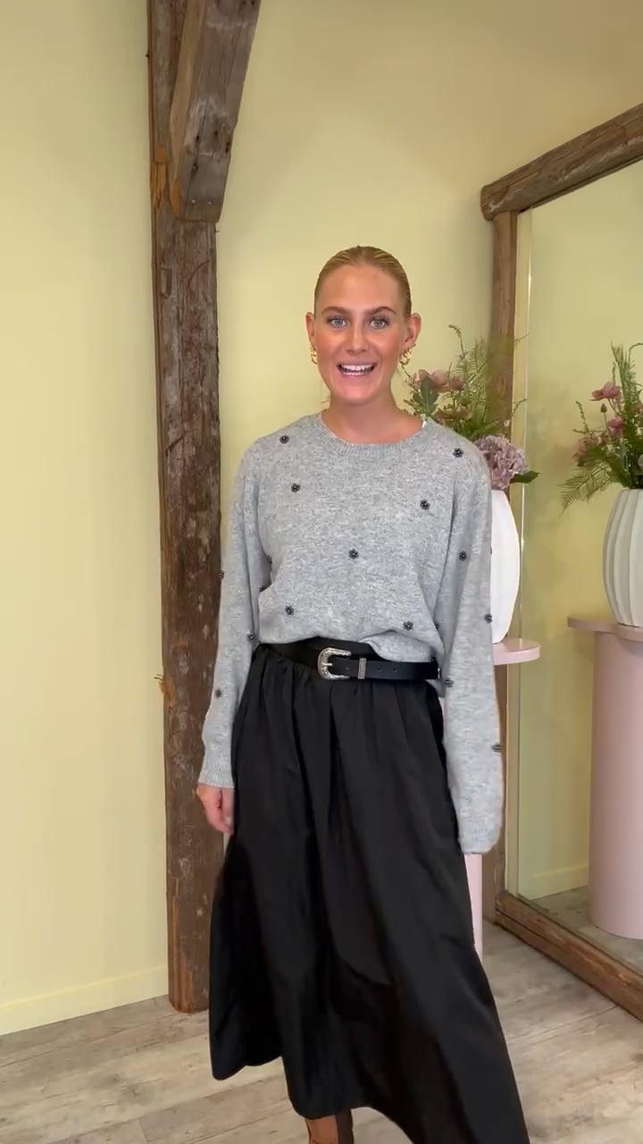 En fin strik fra JDY i en helt klassisk grå farve. Denne strik har fine perler på, som former små blomster - en super fin detalje! Strikken er helt nem at style, men giver samtidig lige lidt ekstra med de fine detaljer!