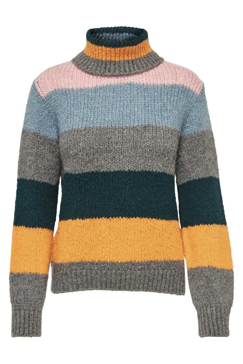 JDY - Strik - JDY Dinea LS Stripe Rollneck Pull Knt - Smoked Pearl/Apricot