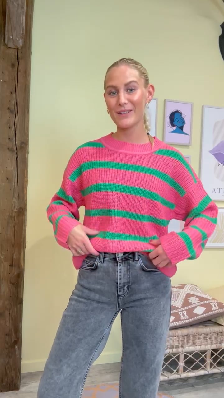 JDY - Strik - JDY Justy LS Stripe Pullover Knit - Shocking Pink