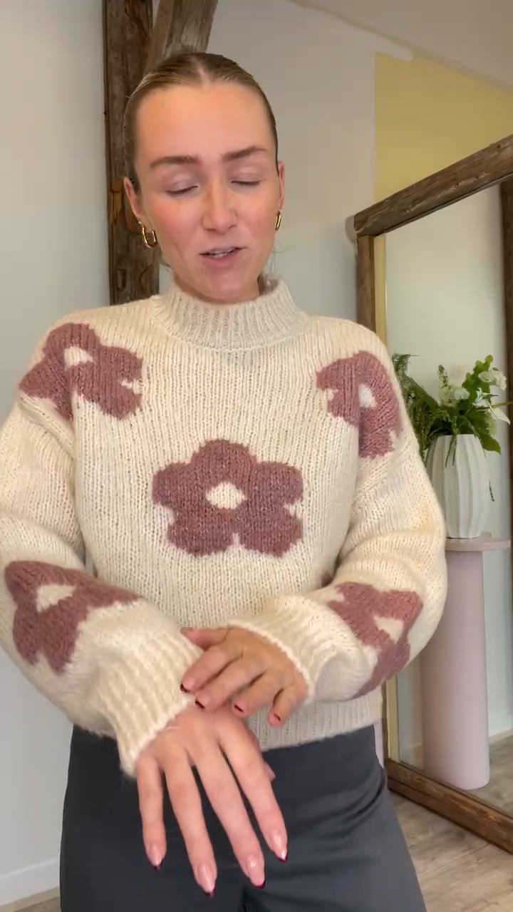JDY - Strik - Jdy Kilian Flower L/S Pullover - Cloud Dancer/Baroque