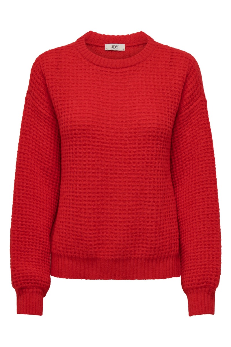 JDY - Strik - JDY Lasina Life L/S O-Neck Pullover - High Risk Red