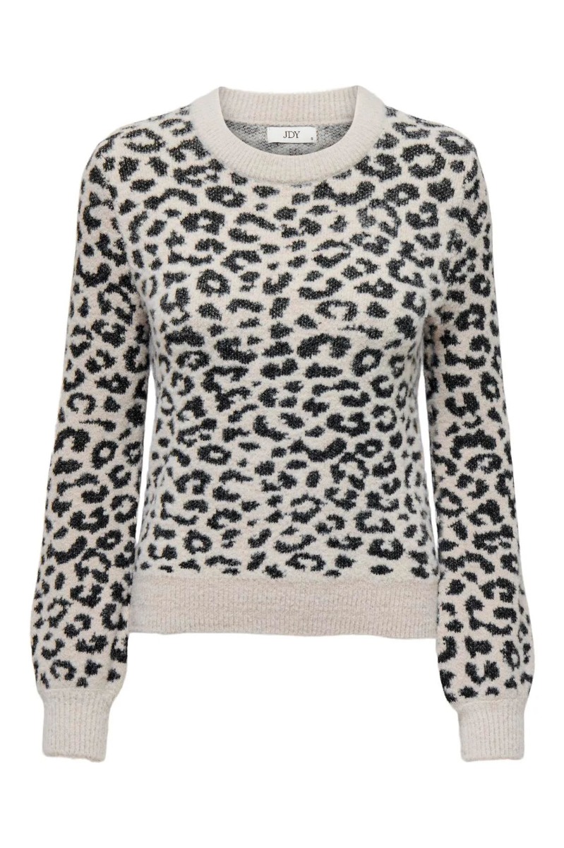 JDY - Strik - Jdy Lorraine Animal L/S Pullover - Cement/Black Leopard Spots