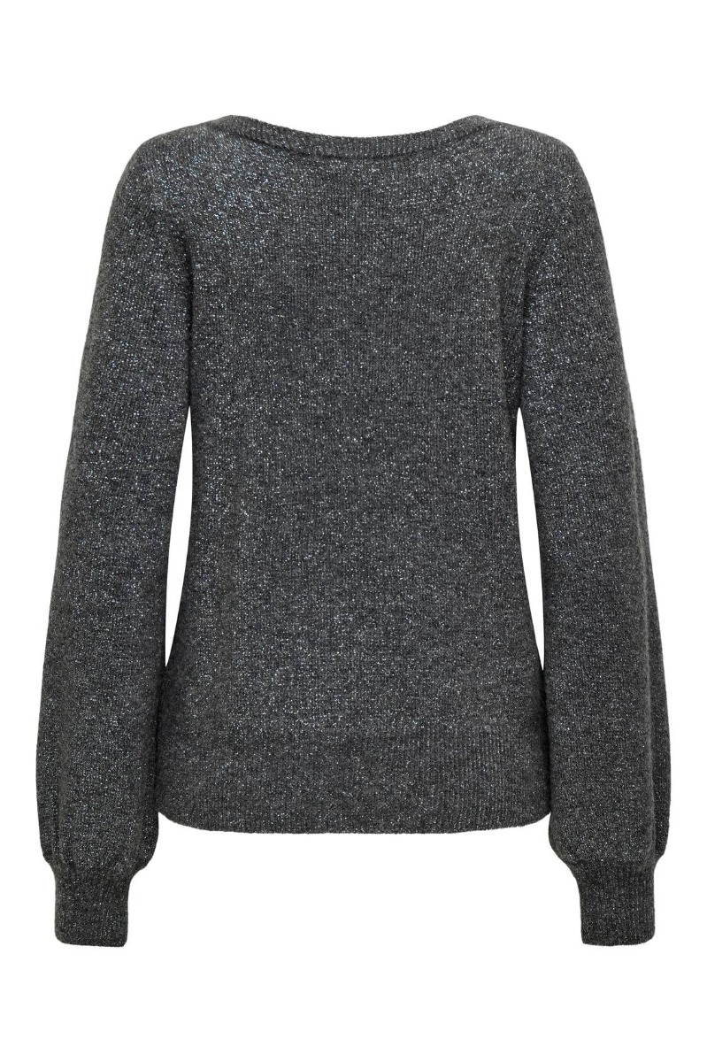 En super flot strik fra JDY i den fineste mørkegrå nuance og masser af glitter! Strikken har en normal pasform, charmerende ballonærmer og en fin ribkant. Style den med et par jeans til koldere vejr, eller måske over en top i varmen!