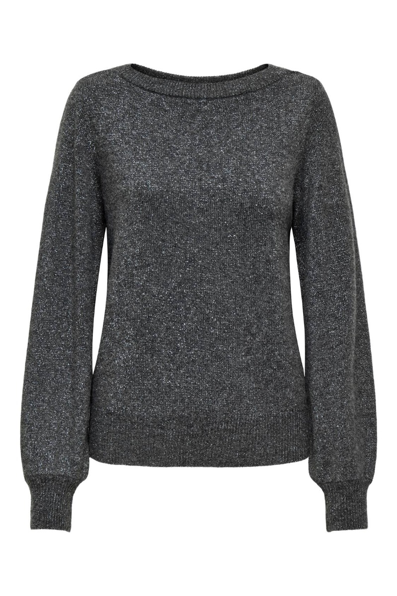 JDY - Strik - JDY Rue Glitter L/S Boat Pullove KNT Noos - Dark Grey Melange