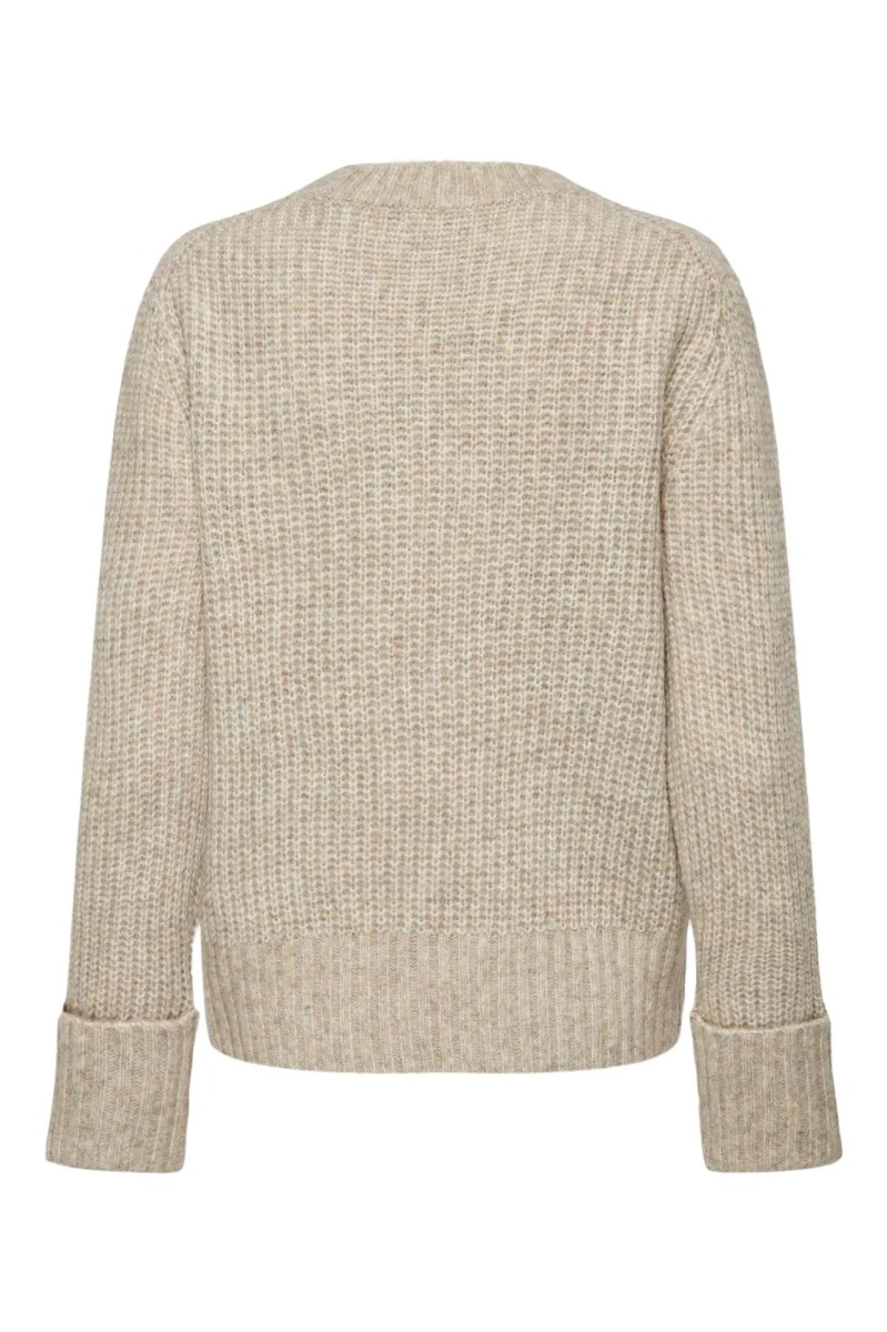 Virkelig fin strik fra JDY i en flot beige farve. Denne strik er helt er perfekt til vinteren i sin tykke kvalitet og med en fin fold ved håndleddet.