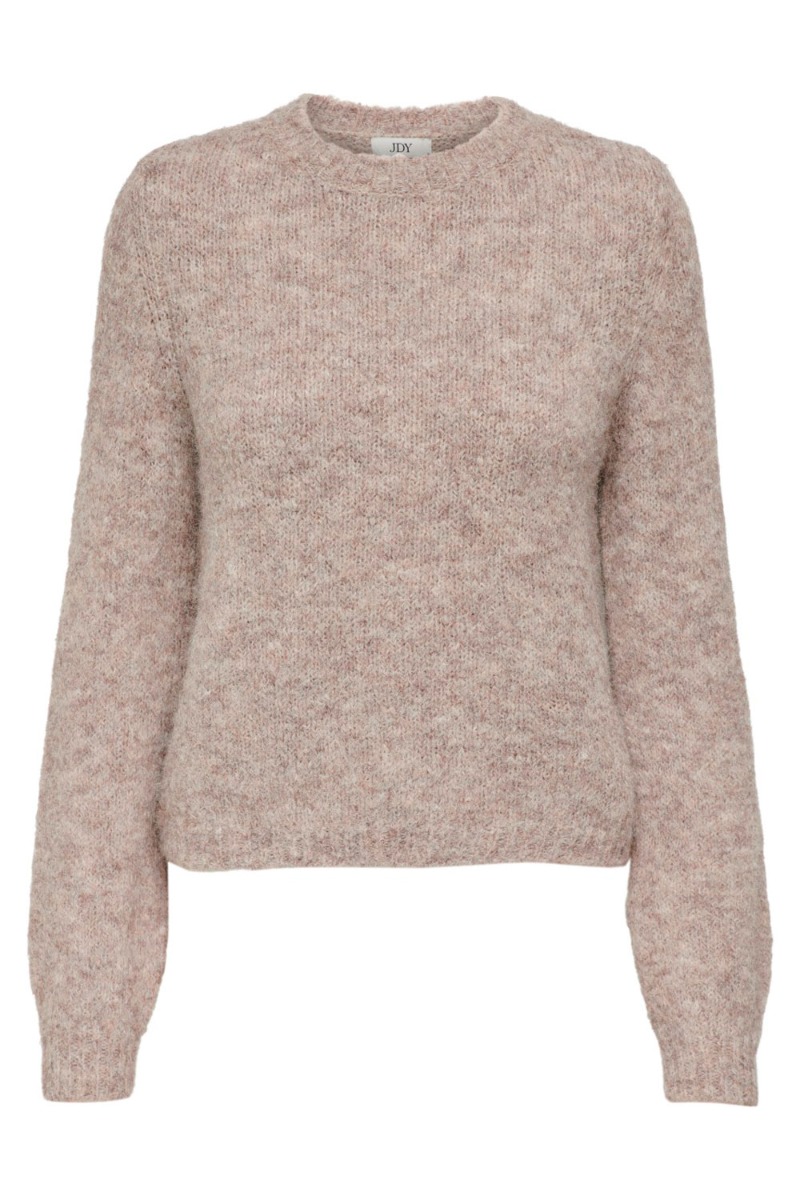 Den blødeste strik er kommet fra JDY i en smuk beige farve. Strikken er løs i pasformen og findes også i mørkbrun farve. Den er tæt i strikken og derfor ikke gennemsigtig. Afsluttes klassisk med ribkant ved hals, ærmer og bund.