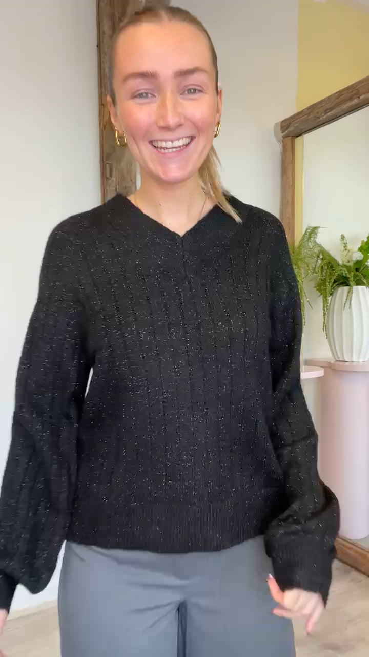 JDY - Strik - Jdyaspen Life L/S Lurex V-Neck Pull Knt - Black