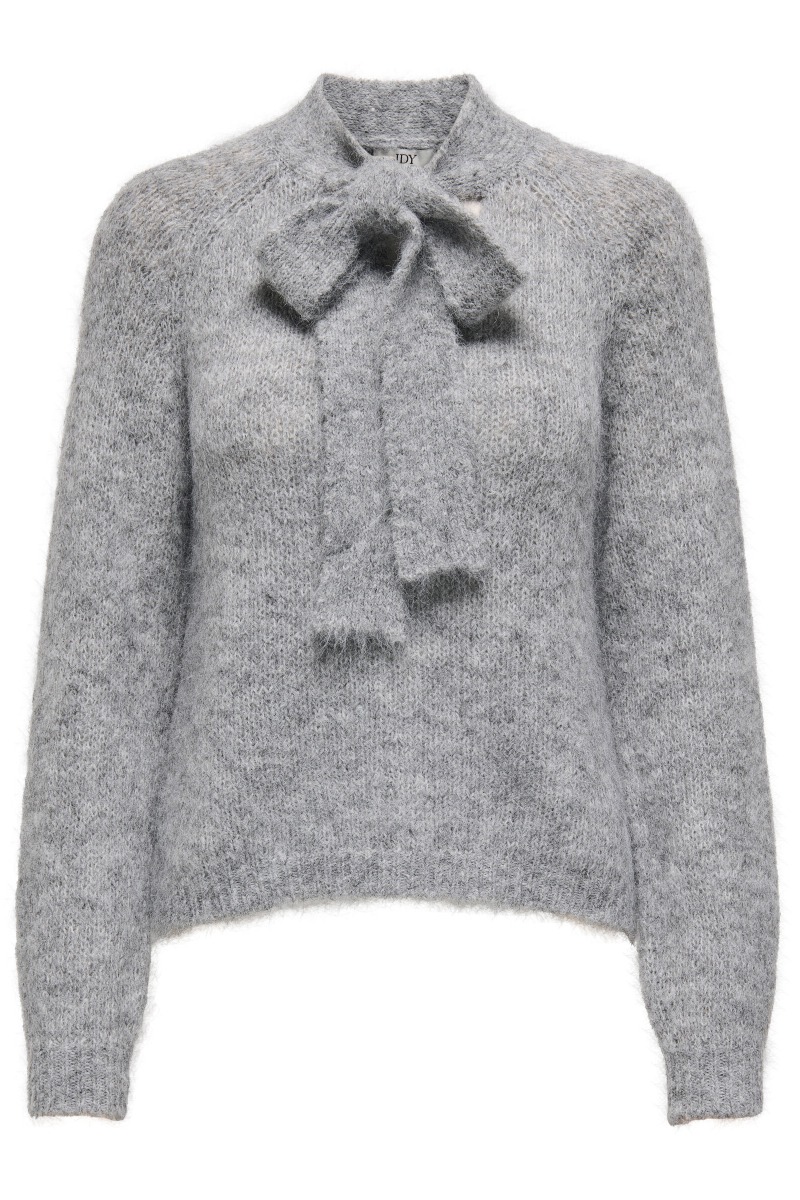 JDY - Strik - Jdyzoey Life L/S Bow Pullover Knt - Light Grey Melange