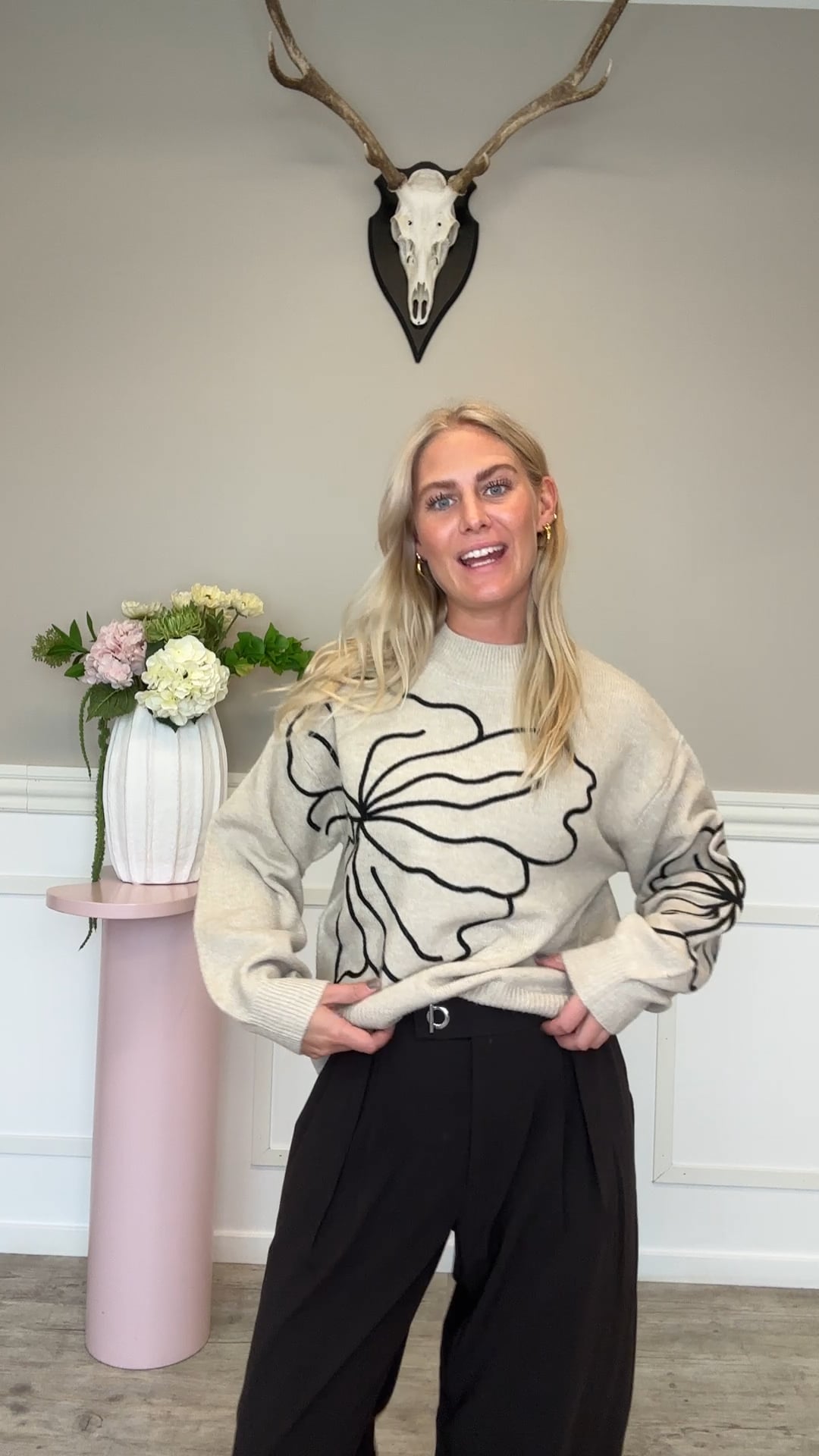 En sød fin strik fra JDY i en løs model er kommet i en lækker blød kvalitet. Den er med en broderet blomst på det ene ærme og foran. Den findes også i flere farver og perfekt til et hverdags look.