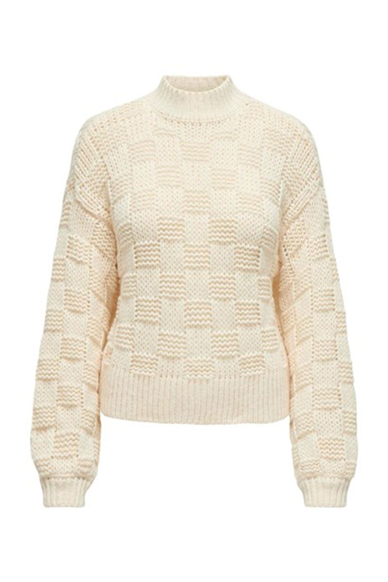 JDY - Strik - JSY Ally Life L/S Highneck Check Pull Knt - Sandshell