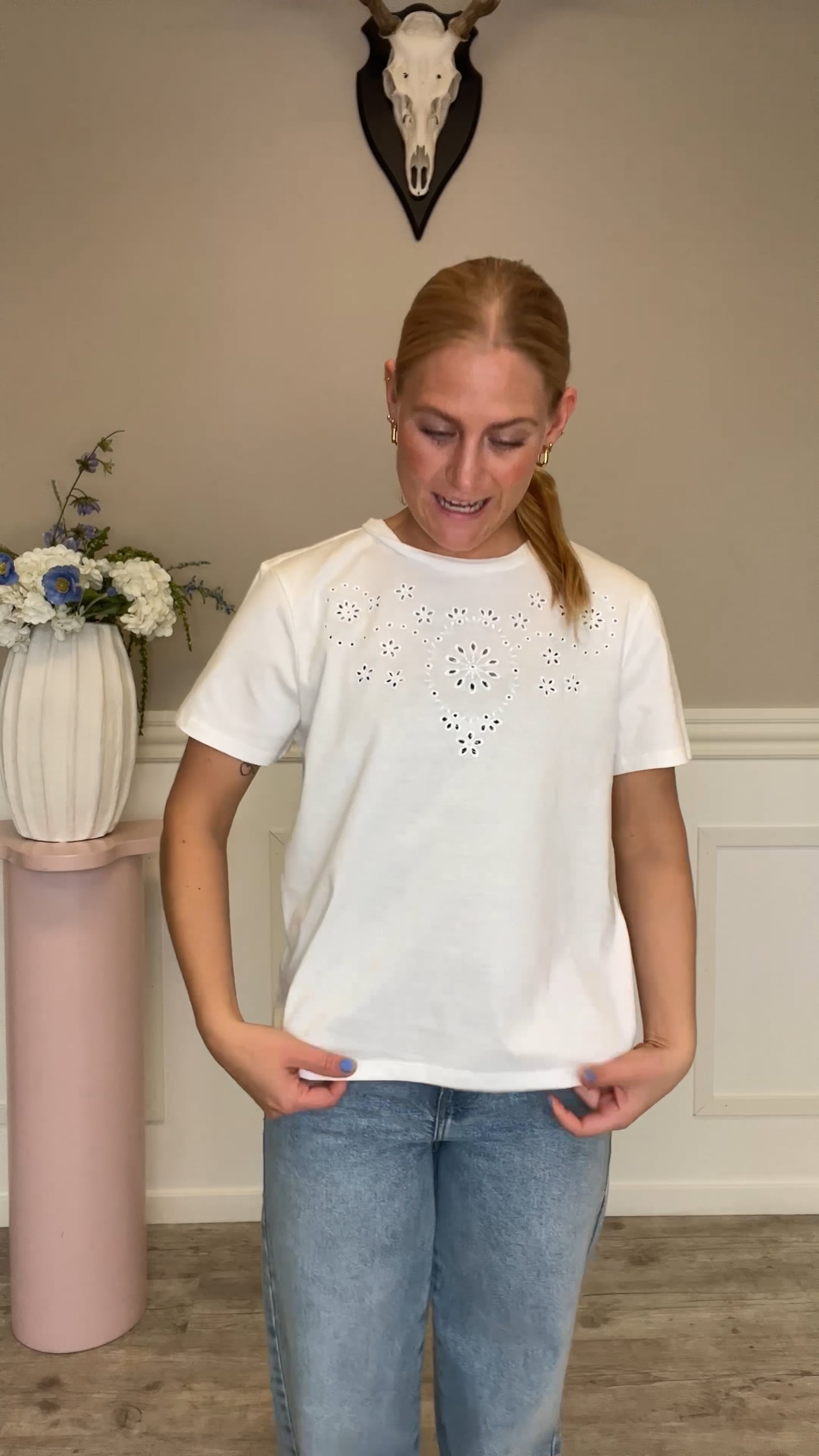JDY - T-shirt - Cif S/S Broderie Anglaise Top - Cloud Dancer