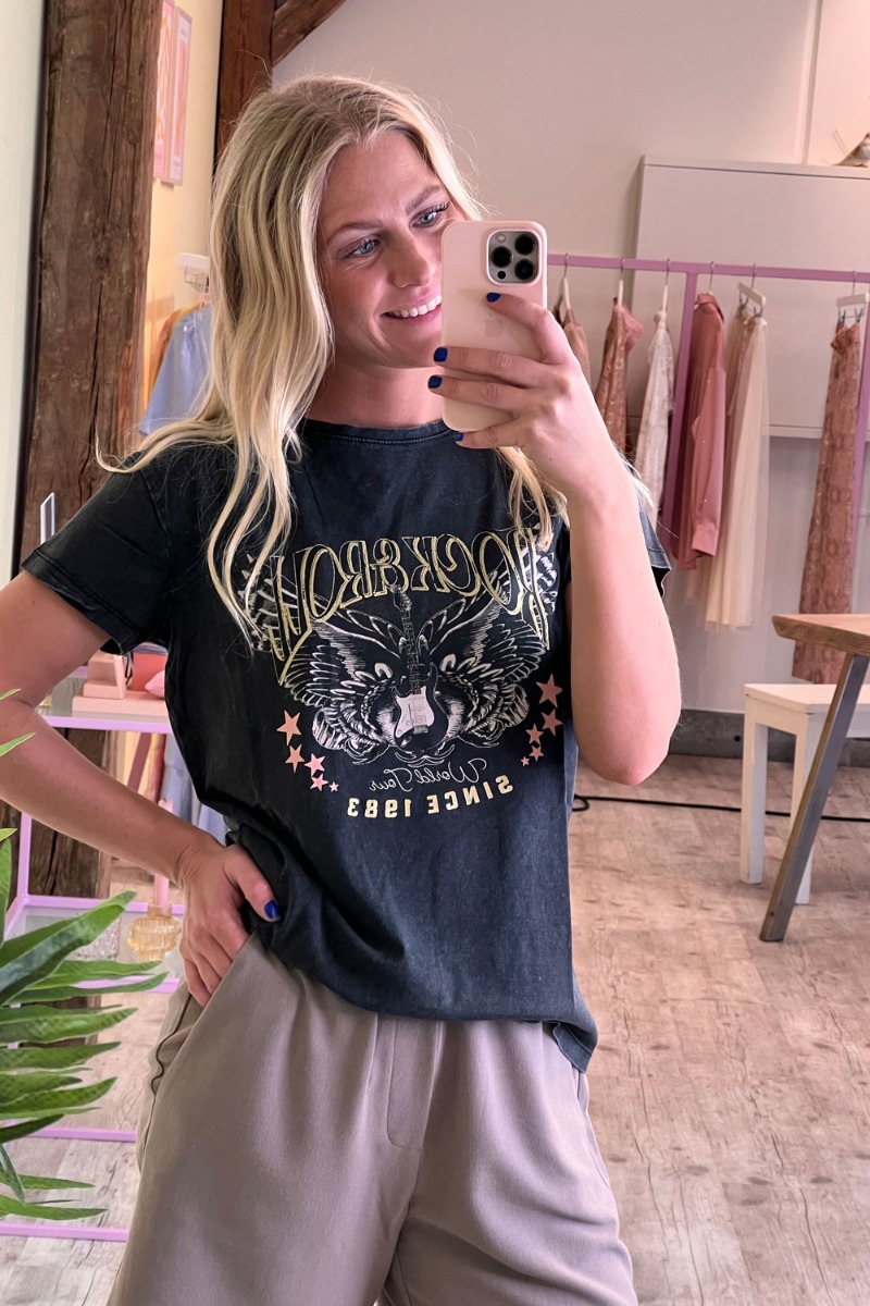 JDY - T-shirt - JDY Farock Life S/S Print Top - Black/Rock & Roll