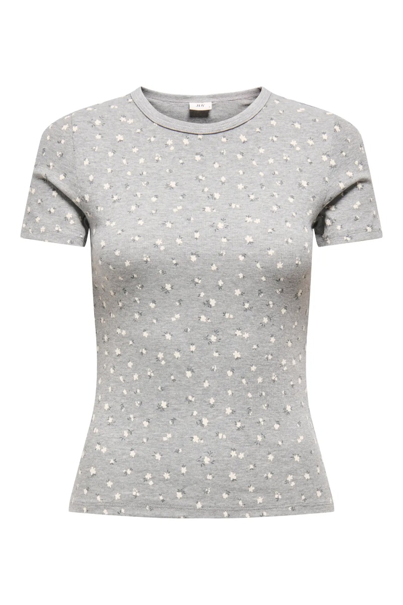 JDY - T-shirt - Lucky S/S O-Neck Top - Light Grey Melange/Soft Flower
