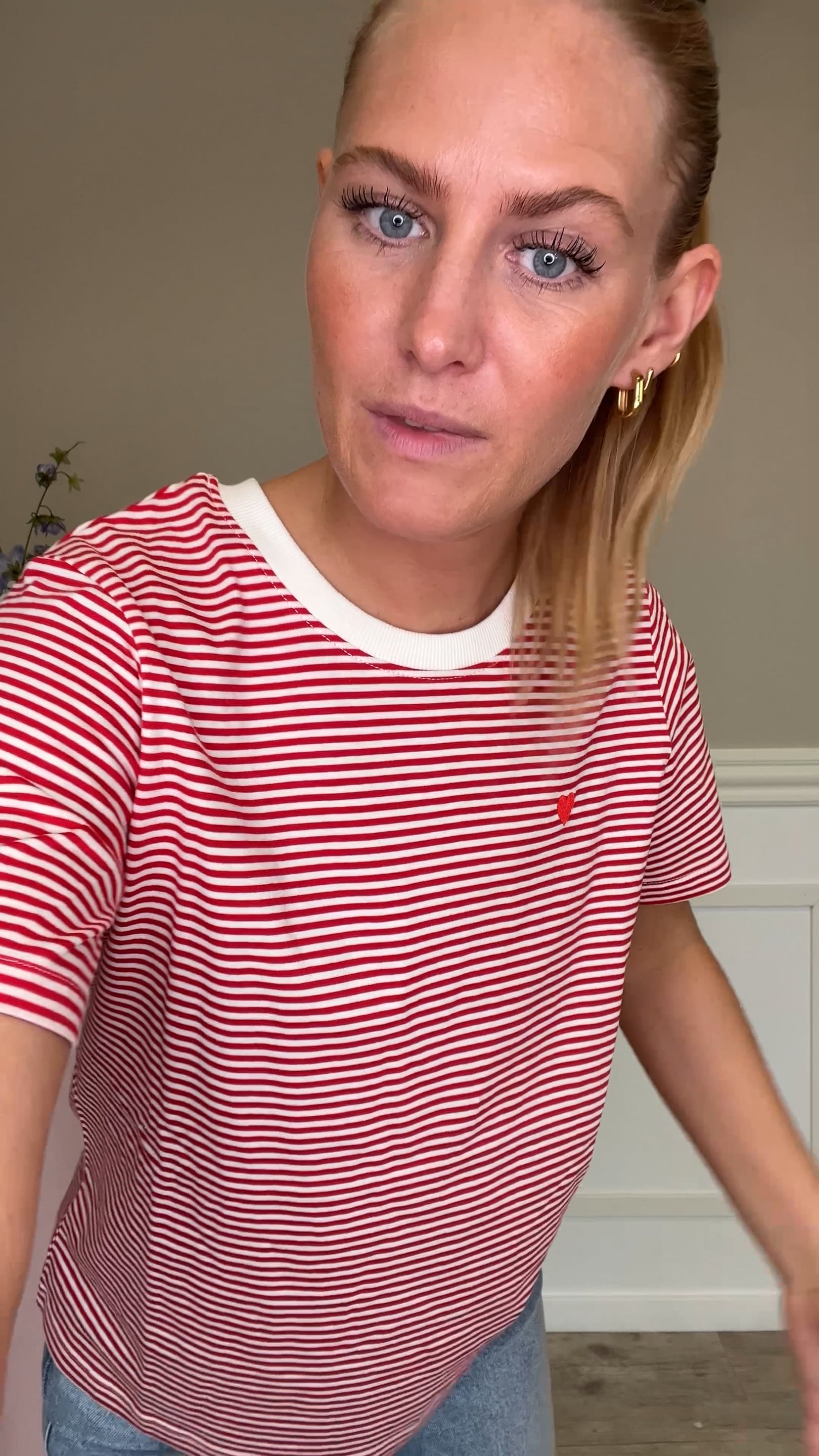 T-shirt fra JDY. Denne t-shirt har et en helt almindelig pasform, med korte ærmer og en rund halsudskæring. T-shirten har et simpelt, stribet design og et lille broderet hjerte. Den er super nem at style til hverdag med et par shorts, jeans eller nederdel.